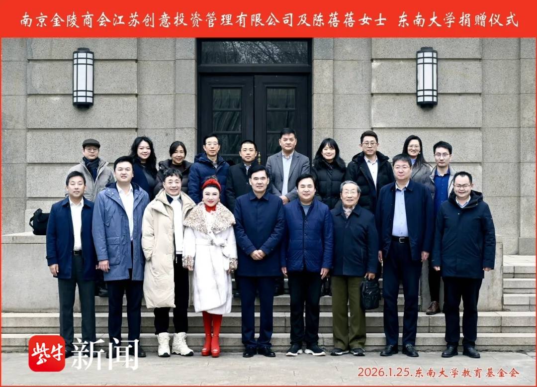 1月25日10时30分,南京金陵商会、江苏创意投资管理有限公司及陈蓓蓓女士向东南大学法学院文化建设捐赠仪式在东南大学四牌楼校区礼堂二楼会议室举行。本次捐赠旨在支持法学院文化环境建设,进一步优化育人生态与学术氛围,助力学院事业高质量发展。