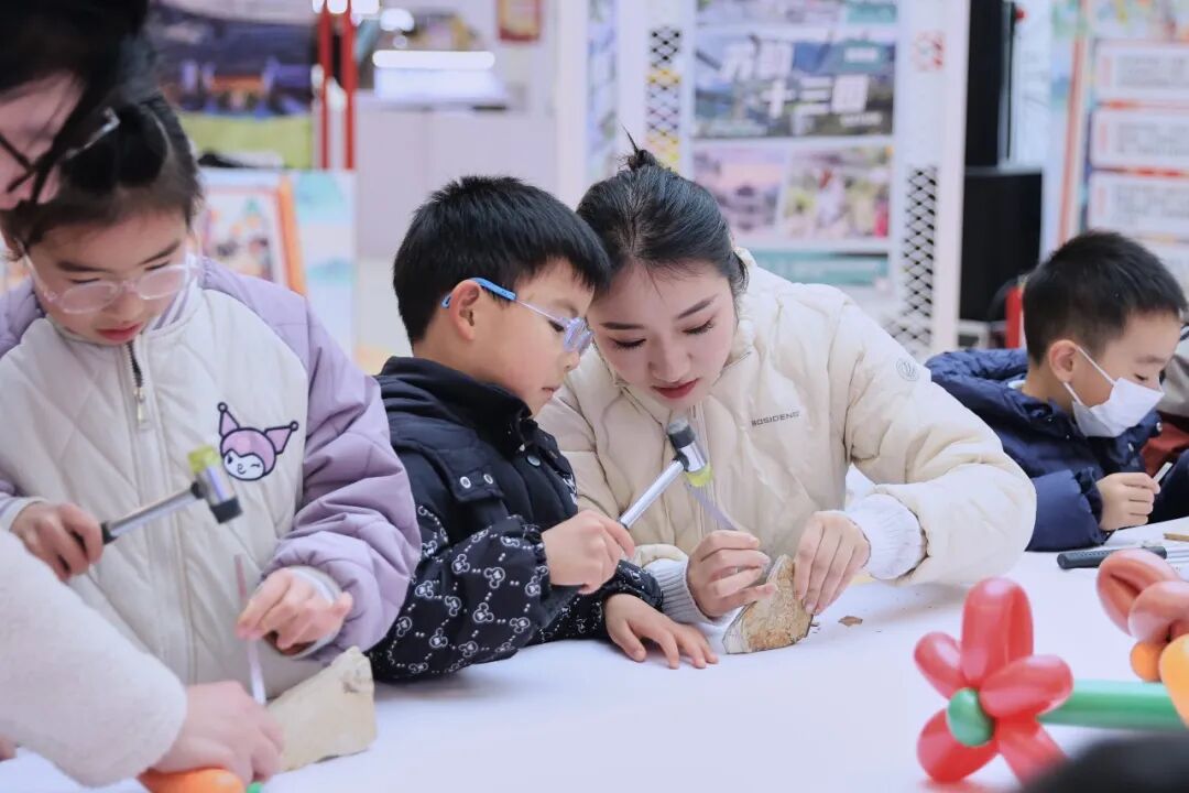 到了合肥,“泡汤鸭”变成了一位 “文化导游”。孩子们在“古生物奇遇”区,亲手修复亿万年前的狼鳍鱼化石;亲子家庭在非遗手工坊里,一起制作金陵纸皮影、绘制秦淮花灯。