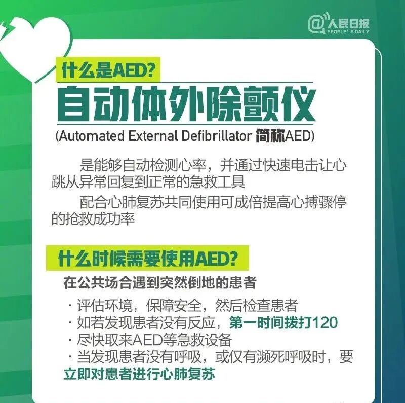 自动体外除颤器AED,是一种便携式的医疗设备,由于操作简单,可被非专业人员用来抢救心搏骤停患者,能够大大提高抢救成功率。那么,“救命神器”AED怎么用?一起来学习↓
