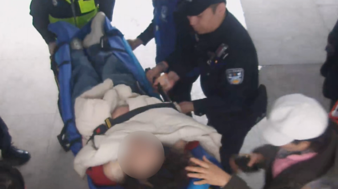 众人协力将女士送上车