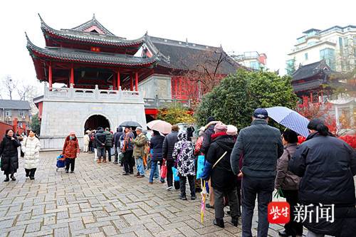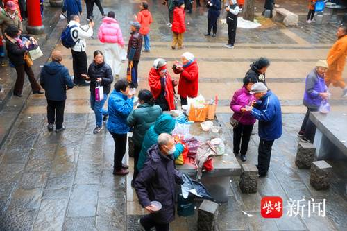 风雨无阻 南京毗卢寺众市民排队喝腊八粥
