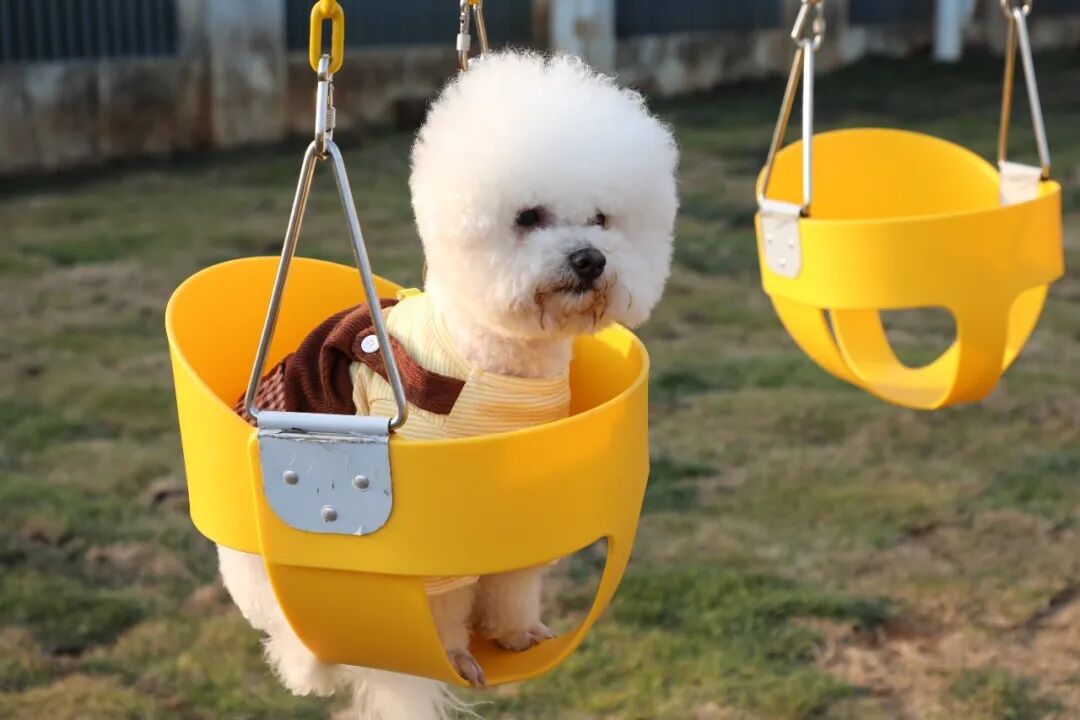 牵引绳一松开,炸炸就像一道白色闪电“发射”出去,在草坪上疯狂转圈,和新认识的狗狗朋友追逐打闹,玩得不亦乐乎。