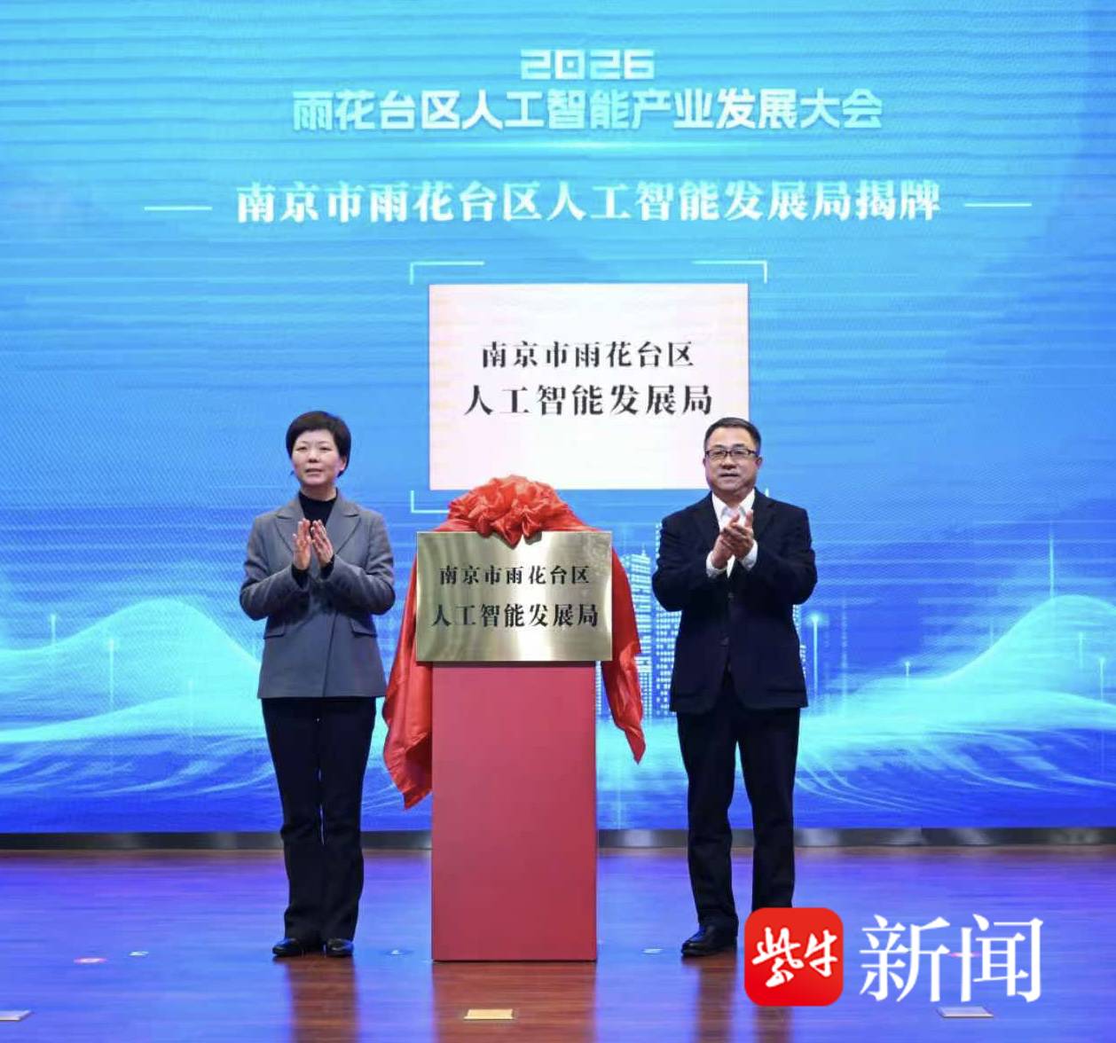 随后,蒋敏、张连春共同为“南京市雨花台区人工智能发展局”揭牌,宣布成立了全省首个列入党政机构序列、配备专门行政编制的区级人工智能主管部门。下一步,雨花台区将深入贯彻国务院“人工智能+”行动要求,持续强化AI・镜界—南京人工智能生态街区建设,深化“技术突破—场景验证—产业应用—体系升级”发展路径,全力打造全国知名的人工智能产业高地,为南京建设国家人工智能创新应用先导区、万亿级软件和信息服务集群提供核心支撑。扬子晚报/紫牛新闻记者 张昊