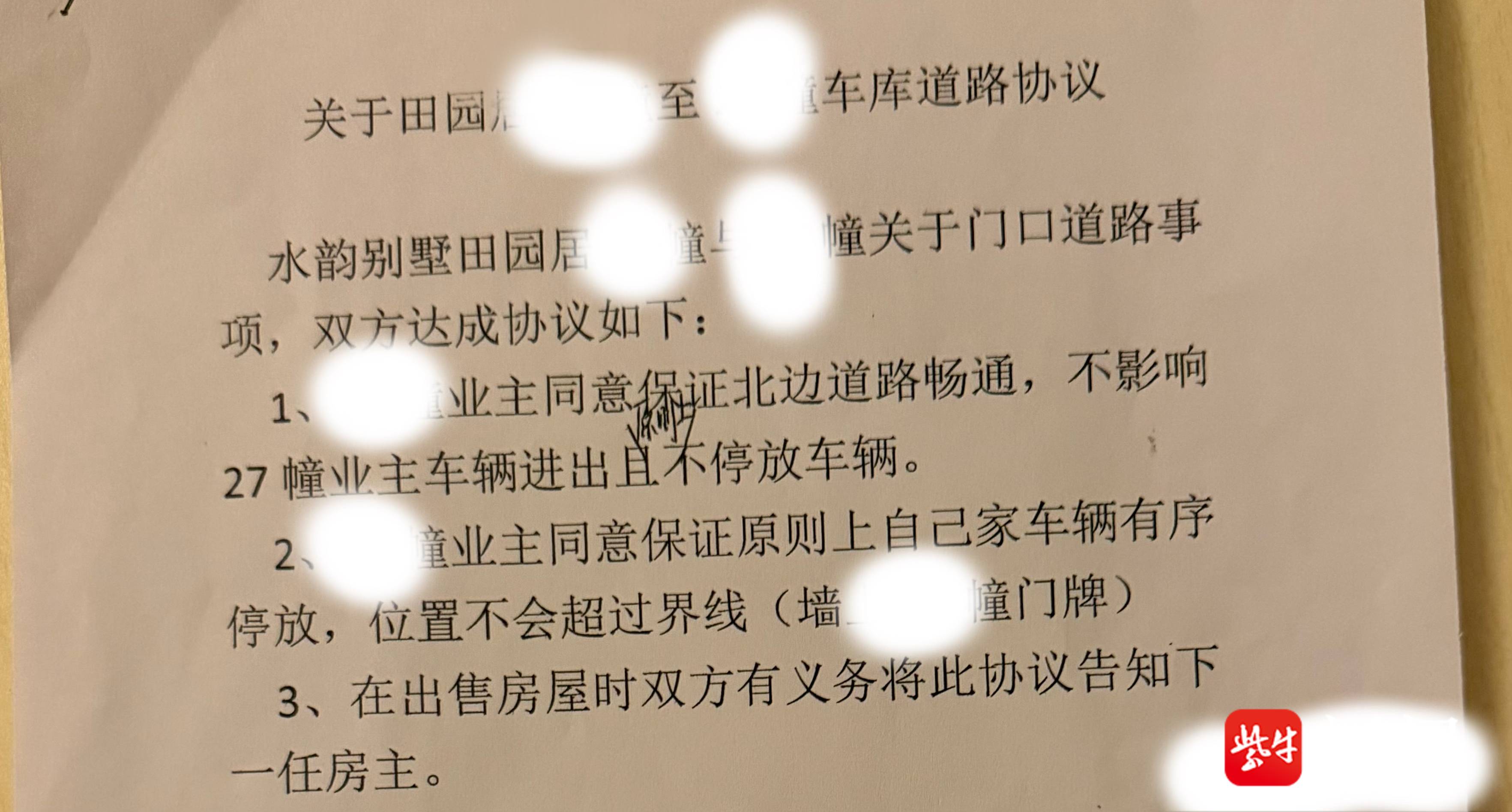 那么,事情果真如此吗,双方纠纷的核心到底是什么?扬子晚报/紫牛新闻记者联系了属地的南京市江宁区高湖社区。社区工作人员介绍,这件事情社区和相关部门已经调解多次,目前双方确实还没达成一致,矛盾没有解决。其实事情的本质就是公共通道停车问题。双方认为都是对方堵了自己的空间和通道。社区工作人员称,2025年7月,双方曾短暂达成一致协议,当时公安、街道等多个部门来现场试图解决问题,并在公共通道画了红线,要求双方各自停车不要越线。当时双方均承诺停好自家车辆,不占用公共通道、不影响对方出行。但这份协议没维持多久,矛盾便再次爆发。“里面的住户(邻居)反映,钟先生的车辆经常挡路,没有遵守之前的协议,这让双方矛盾进一步加剧,最终协议作废。”社区工作人员说道。