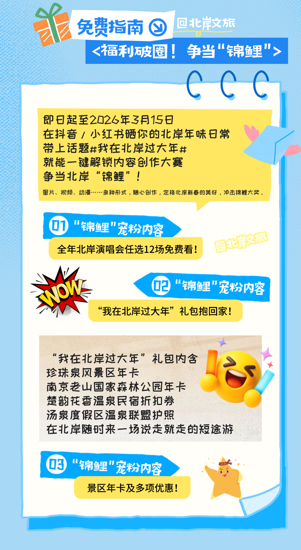 近几年,南京北岸一场又一场大热演唱会,哪一场最吸引你?你是不是也有遗憾抢不到的时刻?现在,南京北岸文旅提供了一个让你免费看全年演唱会的机会!带话题参加活动,有机会成为“锦鲤”,全年任选12场北岸演唱会观看。