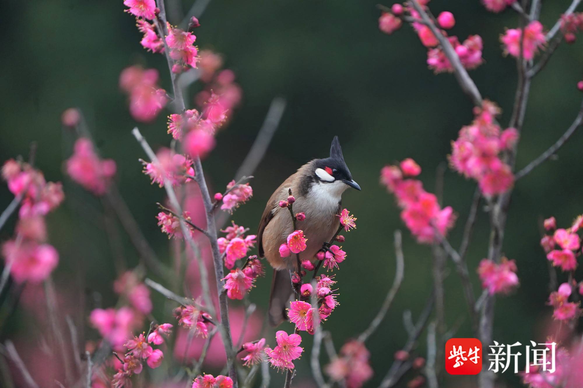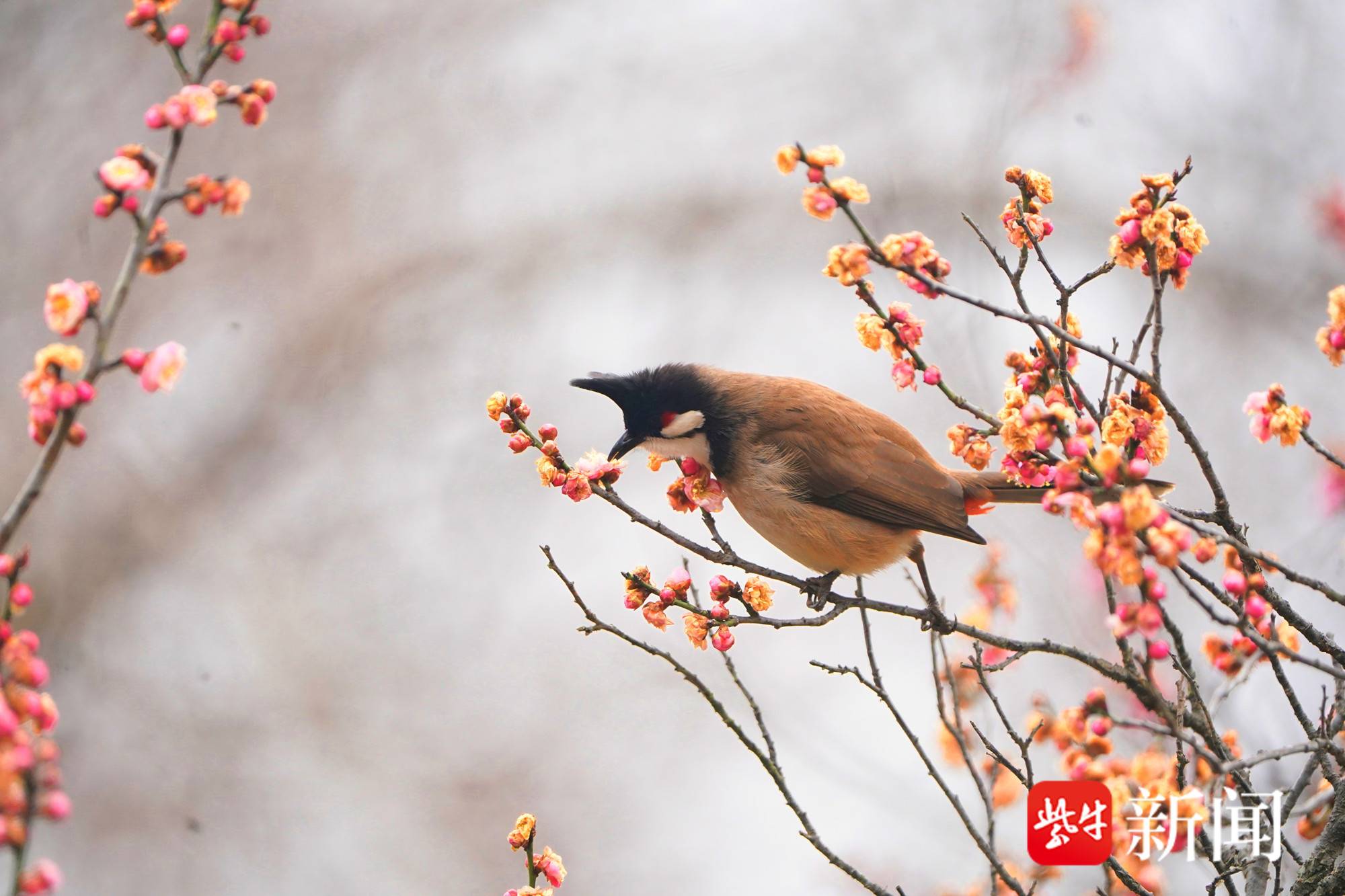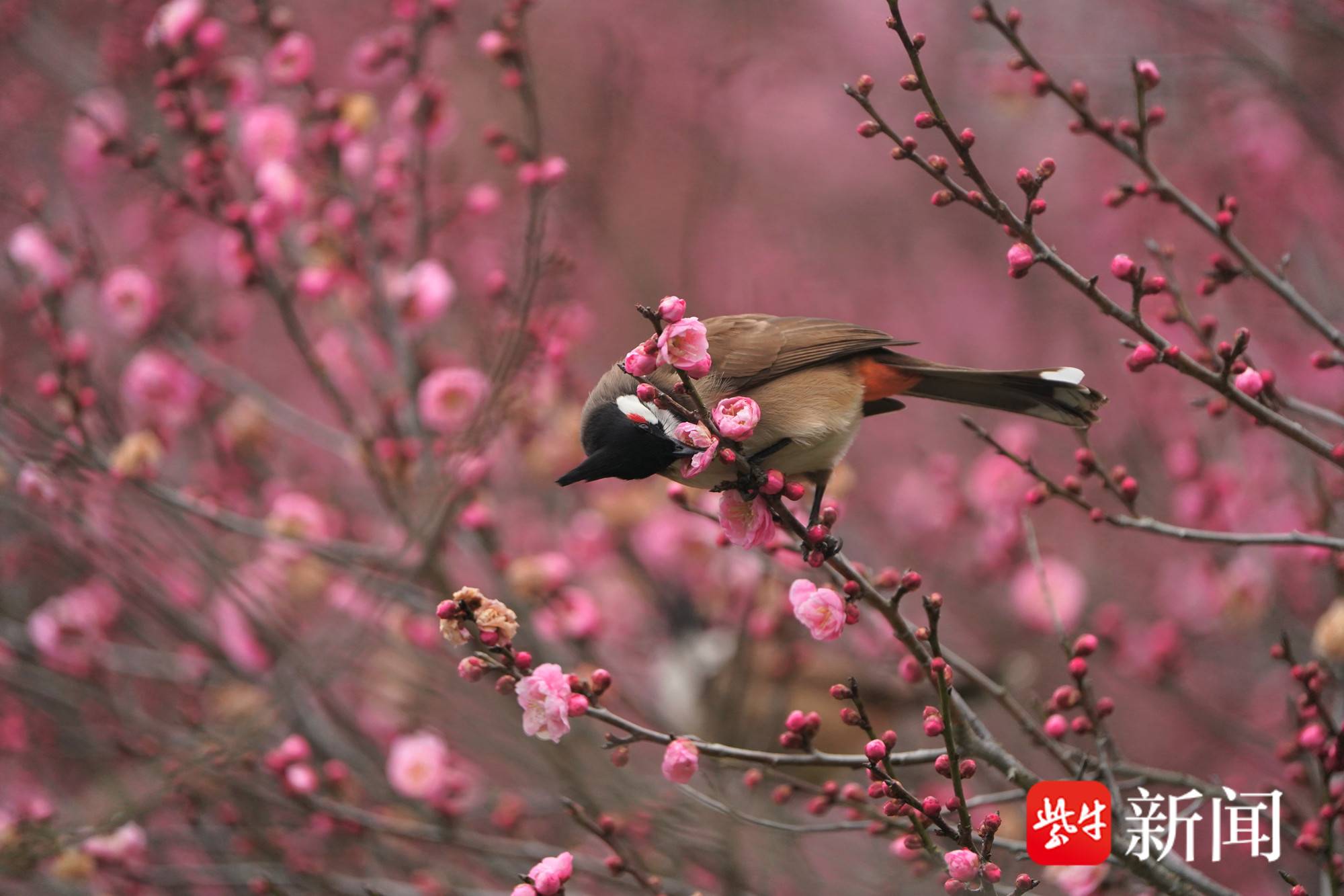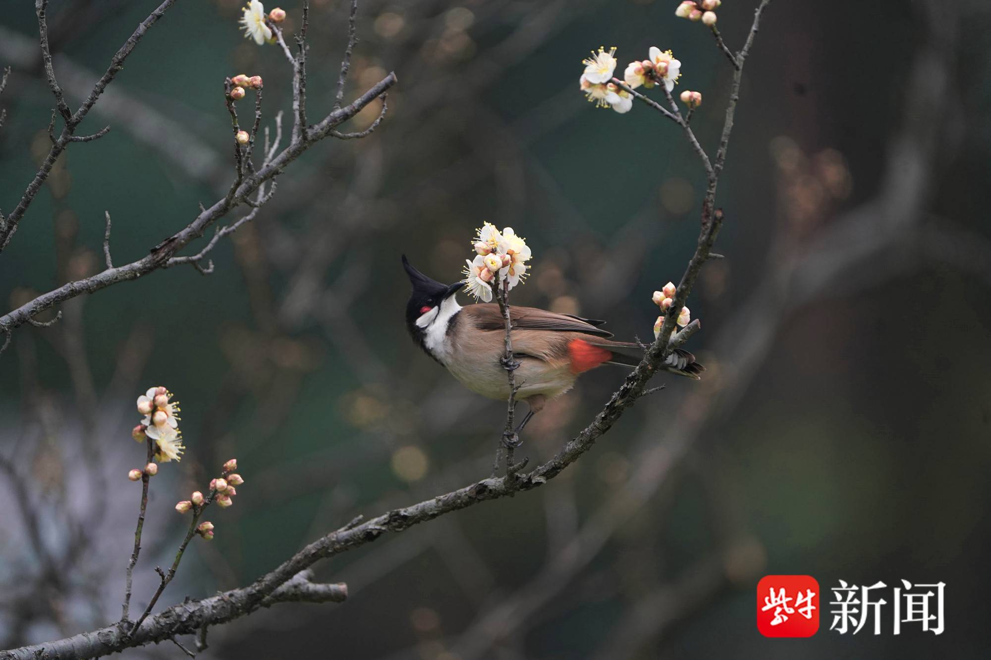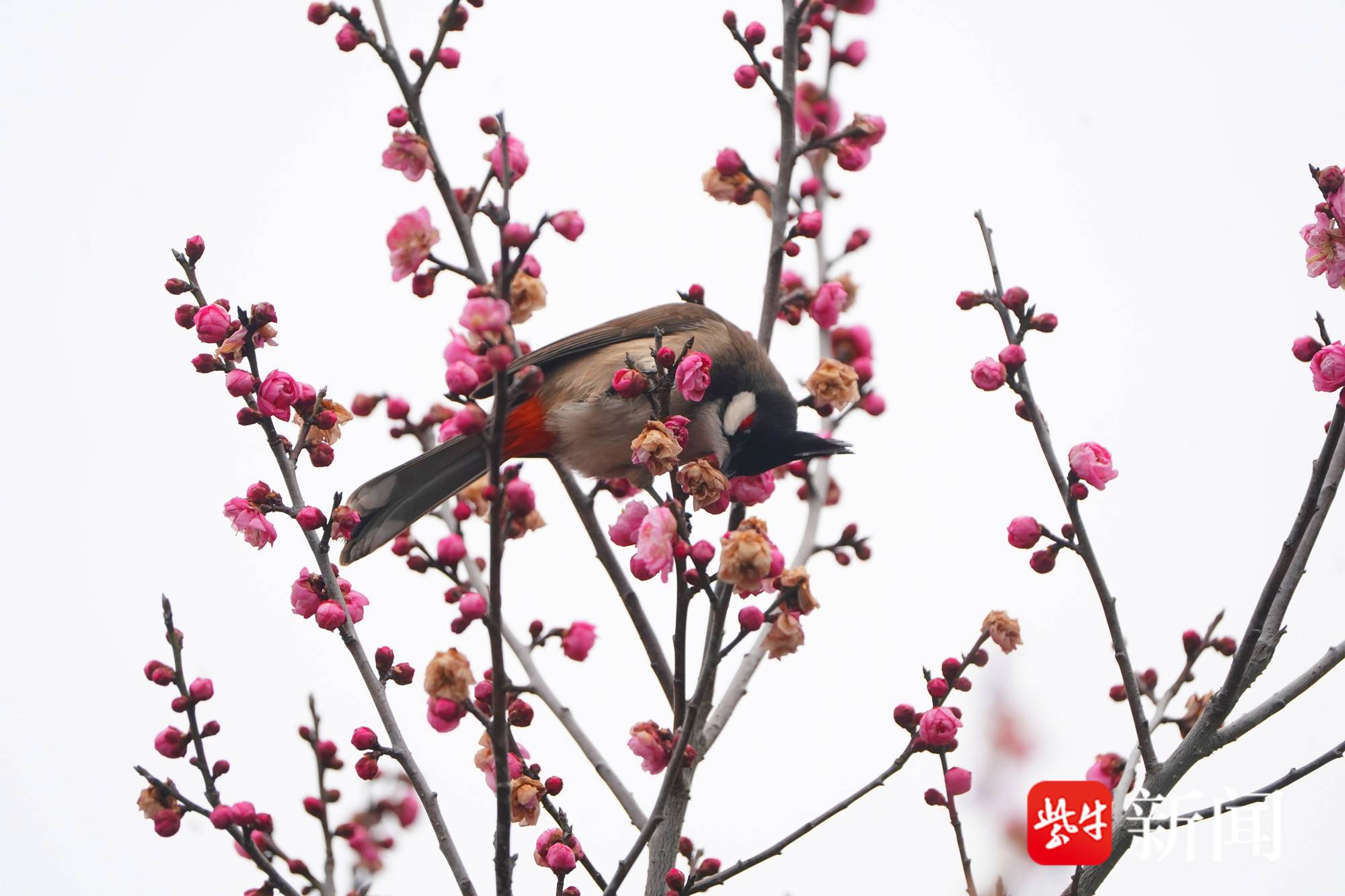 视频|南京梅花山上梅花绽放,红耳鹎鸟儿聚集变欢乐园