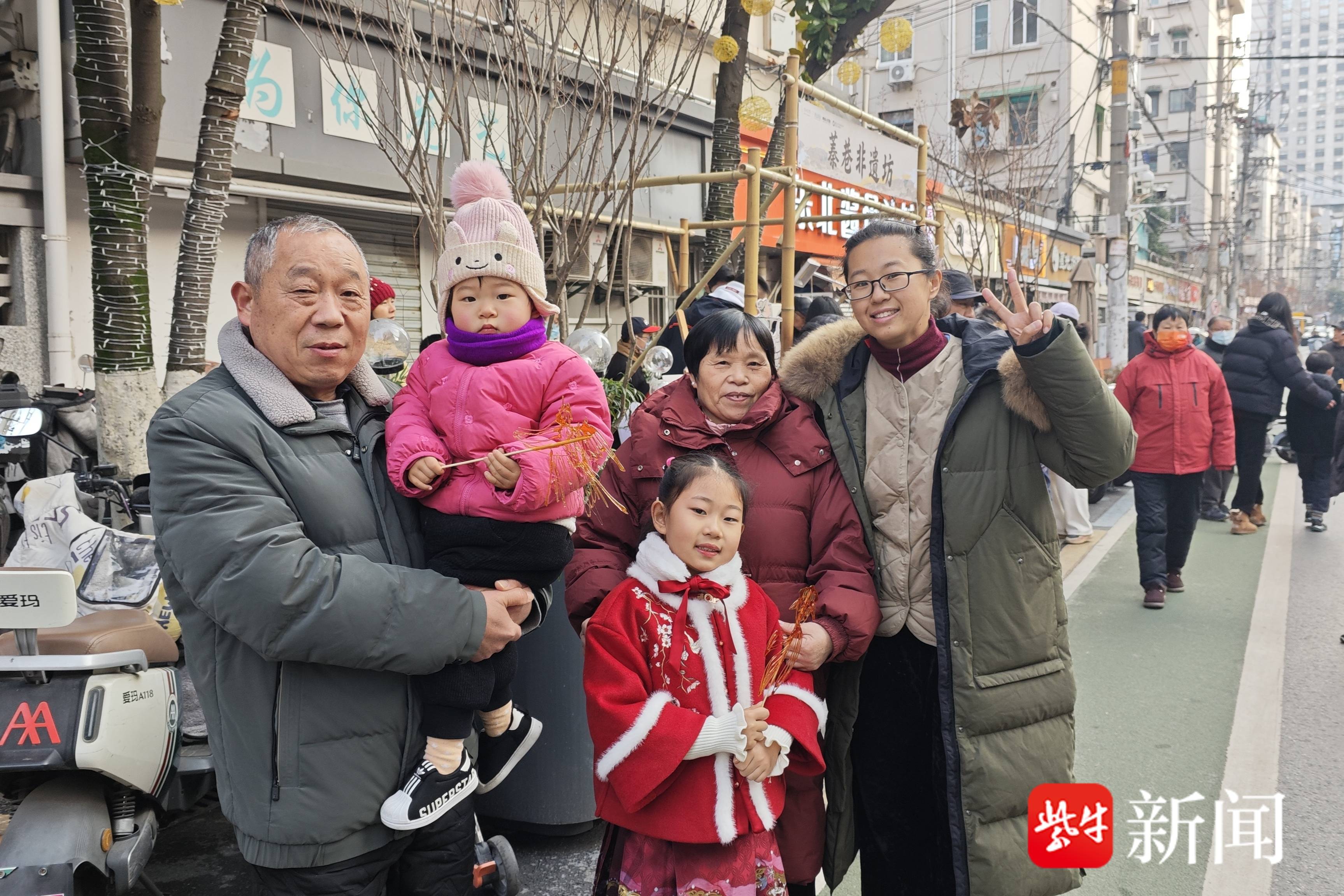 在熙攘的人群中,安女士格外引人注目。她右手怀抱着两岁的小女儿,左手轻轻牵着七岁的大女儿,一路跟随巡游队伍,走完了蓁巷。大女儿手中举着一只晶莹剔透的“小金鱼”糖画,小女儿则迫不及待地啃起了刚拿到手的“小燕子”糖画,一边吃一边咂着小嘴连声说“甜”,姐妹俩的笑脸比糖画还要甜上几分。“我们是去年夏天才搬到蓁巷附近小区居住的,听说今天有活动,特意带孩子来玩。”安女士笑着告诉记者。看着女儿们开心的模样,她的眼里满是温柔。