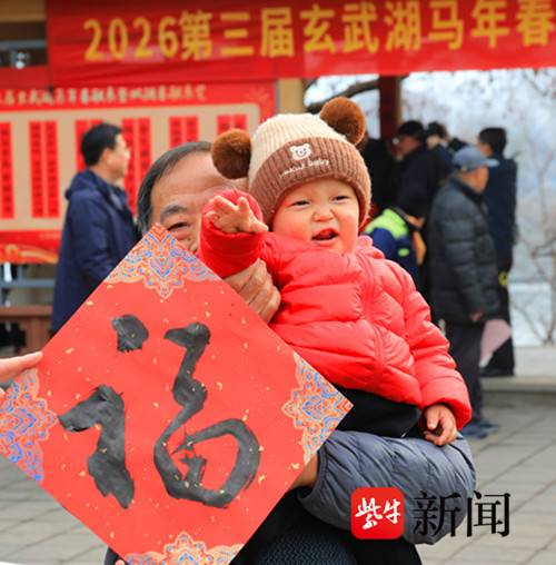 扬子晚报网2月1日讯(通讯员 戎飞霞 练红宁 徐福庚 记者 闫春旭)2026年第三届南京玄武湖双拥春联、马年春联展览在玄武湖樱洲长廊开幕,数十副双拥春联展示在长廊两侧,众多书法家挥毫泼墨,撰写“福”字和春联。既展现马年特色,又弘扬军民鱼水情深。不少闻讯而来的市民游客被吸引,纷纷围观,排队领取春联和“福”字。