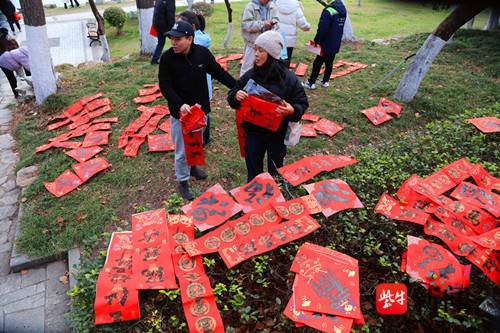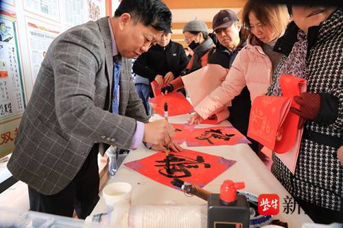 活动现场,黄建新、肖继勇、苏家乐三位军休干部、军旅书法家现场挥毫,以精湛的艺术功底赢得市民喝彩。两位书联的小军娃引人注目,他是来自南京后标营小学学生张成王子和浦口区实验学校学生张驰。别看他们小小年纪,却尽显阳刚雄浑,其中10岁的张成王子是第二次参加此活动,他曾将书法作品赠送给海军南京舰等部队官兵,并将在今年春节为部分知名哨所的子弟兵送联。地方书法家朱凯、赵小平、冒炳国等冒着寒风挥毫书联送给市民,共同弘扬中华优秀传统文化。
