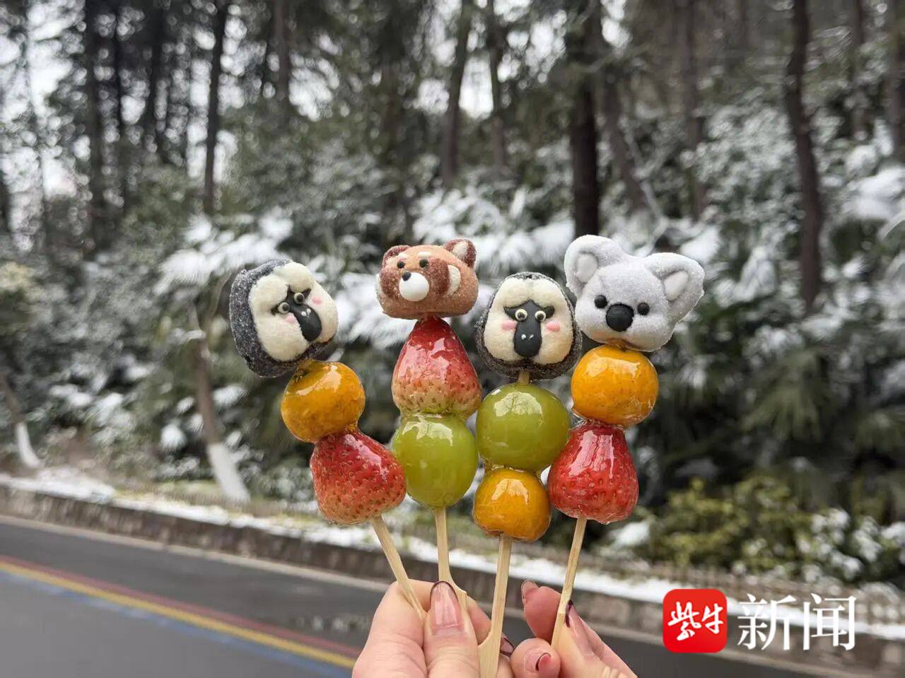 更让人惊喜的是红山的文创产品,从软萌的动物玩偶到实用的生活好物,再到近期爆红的动物主题文创美食,Q版“杜杜”冰糖葫芦、考拉造型蛋糕等,萌到“犯规”,网友调侃“花70块门票进去,买700块文创出来”。