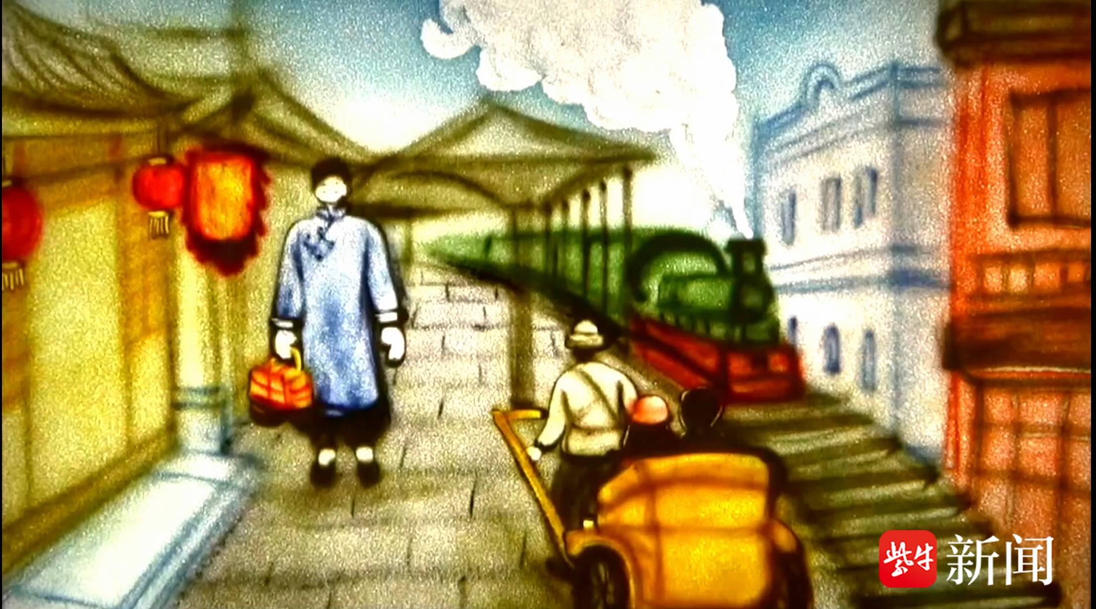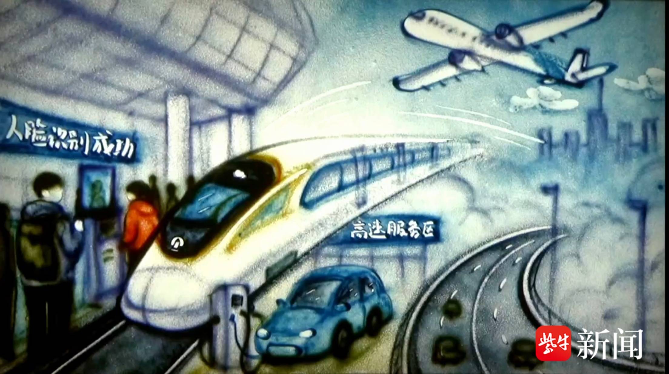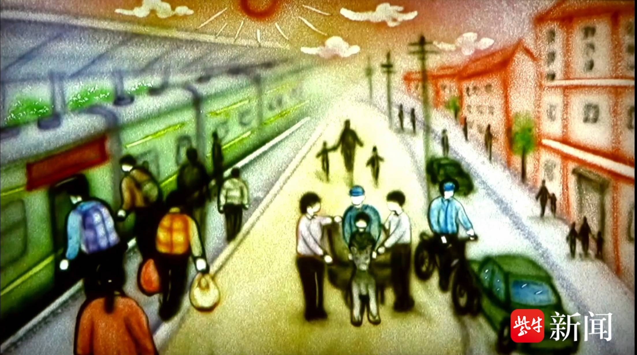 从“古道车马”到“高铁翱翔” 南京铁路职工用沙画勾勒《回家过年》