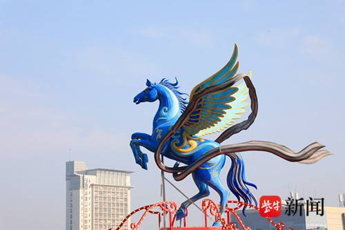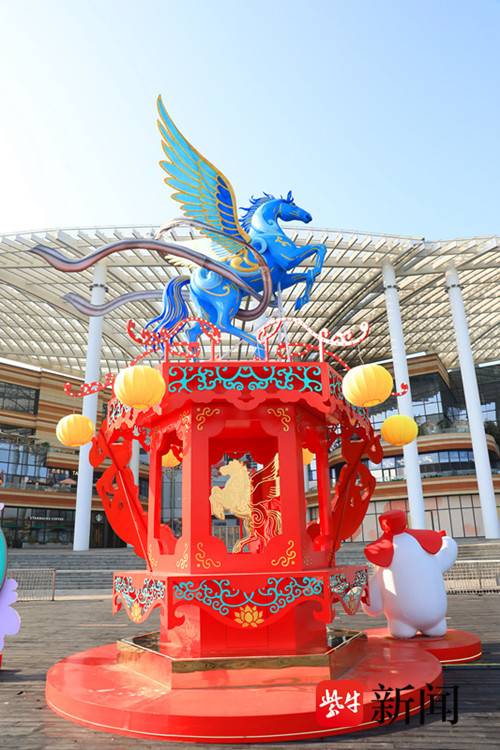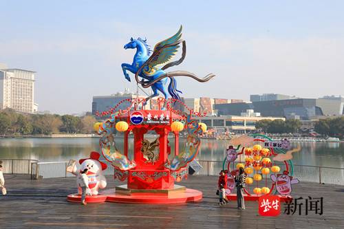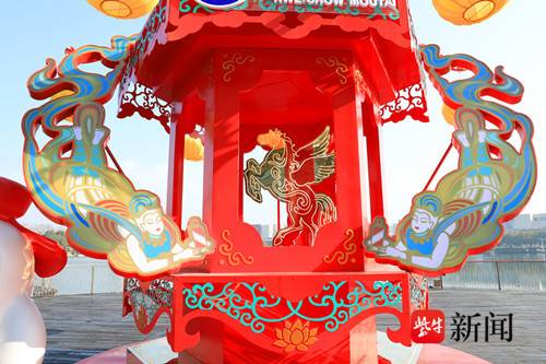 扬子晚报网2月4日讯(通讯员 徐福庚 记者 闫春旭)南京栖霞仙林金鹰湖畔飞天宫灯亮相,为春节增添了浓厚的节日氛围。这盏红色宫灯造型典雅,内部有三个“金黄”小马持续转动,象征马到成功、吉祥如意;顶部一匹展翅飞马更显灵动飘逸,寓意飞跃新程、前程似锦。该宫灯不仅是一处打卡点,也承载着人们对新年的美好祈愿——团圆、兴旺、步步高升。其设计细节,如色彩搭配、动态元素和象征意义,都体现出匠心独运的民俗美学。