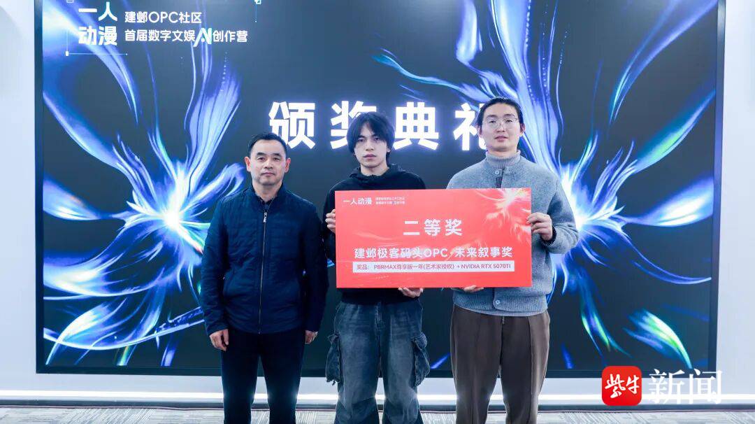 邹旭(右)在“一人动漫”——建邺极客码头OPC社区首届数字文娱AI创作营中获二等奖