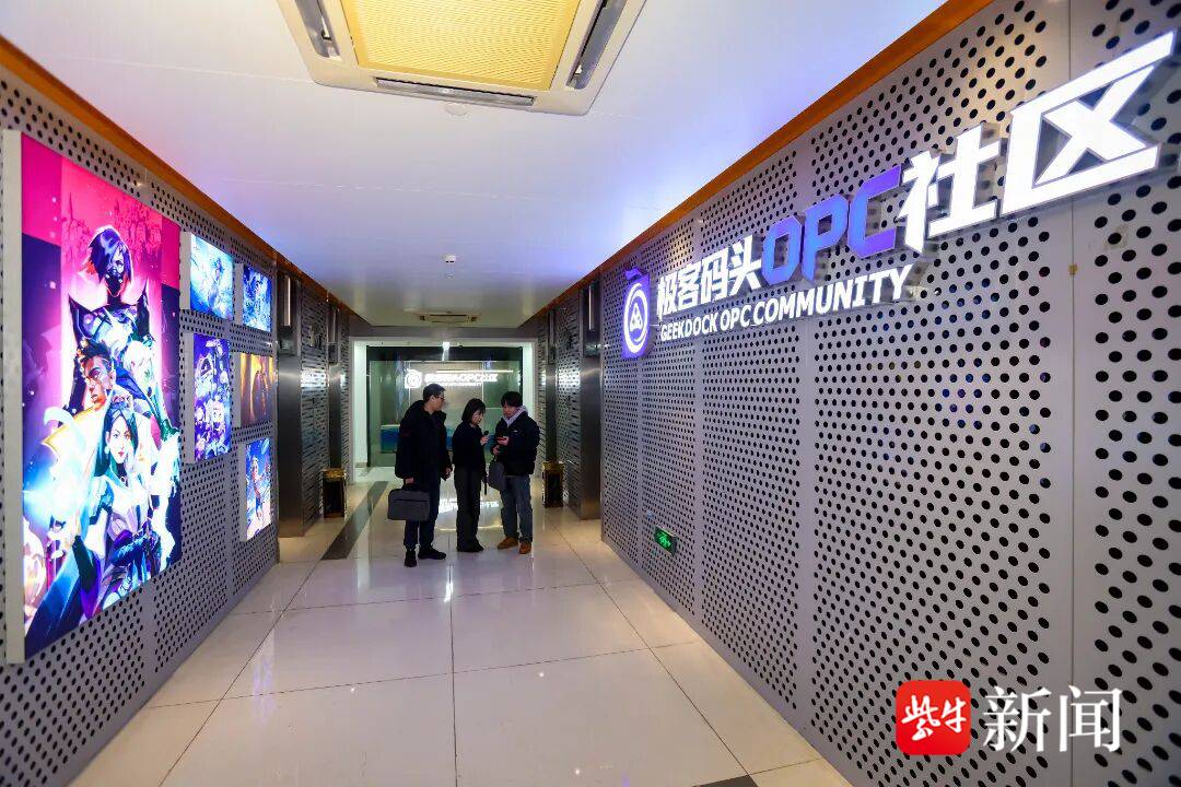 作为聚焦动漫游戏方向的数字文娱创业载体,极客码头OPC社区位于建邺高新区数字消费集聚区3栋10层,通过联动腾讯、咪咕、原力、万生华态、连尚文学、现代快报、中国联通等产业链龙头,以及南京传媒学院、南京艺术学院等高校,构建起覆盖“创意—技术—发行—变现”全链条的服务体系。无论是版权快速登记、AI工具培训,还是游戏发行渠道对接、IP商业化指导,创业者均可“按需取用”。