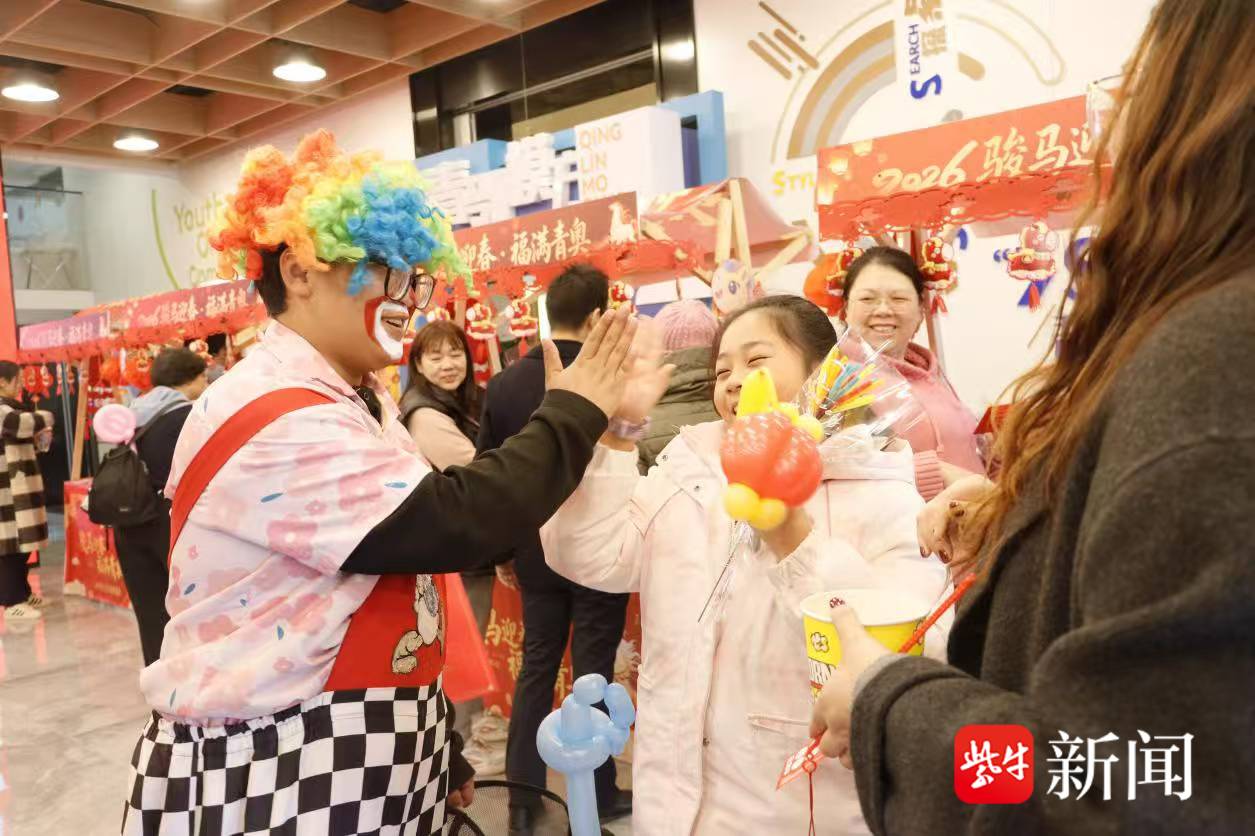扬子晚报网2月6日讯(记者 徐昇)在冬日的暖阳下,南京建邺区双闸街道青奥社区党群服务中心一楼洋溢着一片喜庆祥和的气氛。2月4日,一场以“茉莉花开文艺直通车——骏马迎春 福满青奥”为主题的新春游园会在这里举办,为辖区居民带来了一场别开生面的新春盛宴。