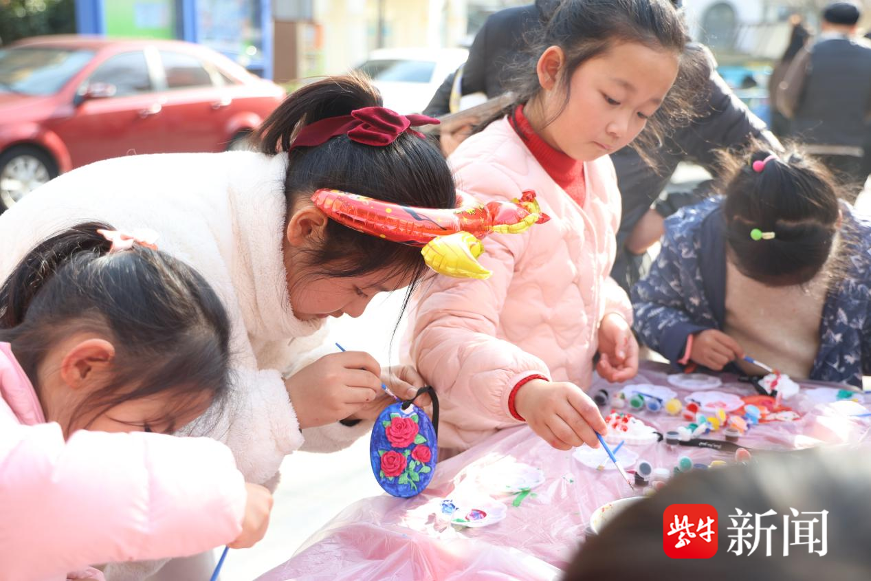 市集现场,“民俗手作工坊”人气爆棚,成为最具吸引力的区域。“纳福呈祥”非遗拓印画体验台前,居民们在专业老师的悉心指导下,手持拓包,将吉祥文字、马年图案、莲花祥云等元素模板拓印于宣纸之上。活动不仅让居民亲手触摸非遗温度、感受传统技艺的精妙,更将“清风正气”的廉洁理念融入新春祝福,实现了传统文化与廉洁教育的有机融合;一旁的“吉韵生花”香薰花牌浮雕画制作区同样创意十足,小朋友们围坐在一起,发挥巧思,在花牌的空白处顺着肌理纹路涂上缤纷色彩,并滴入精选香氛精油,亲手打造出兼具颜值与雅致香气的特色手作;此外,“福灯手作”“吉彩民俗”冰箱贴DIY也吸引众多家庭参与,一盏盏花灯点亮新春期许,一个个创意冰箱贴承载美好祝愿,让传统文化与清风正气浸润生活点滴。