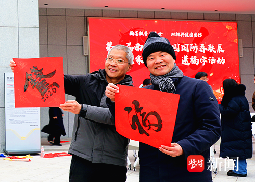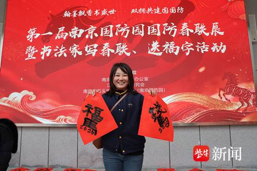 “翰墨飘香书盛世;双拥共建固国防。”该活动由南京市双拥办、江苏省楹联研究会、南京市石头城遗址管理处(南京国防园)联办,数十副双拥国防春联将展示到三月初。现场举行了写春联送“福”字活动,江苏楹联家周游、魏艳鸣、黄乐年、刘云虎、周金陵等到场指导、参观南京双拥文化馆和书写春联,南京知名拥军人沙漠带着沙漠拥军书画院的书画家翁天金、蒋伟、石善兵、陈代明参加活动,南京市力学小学四年级学生姜添元、徐子淇也为市民写联。