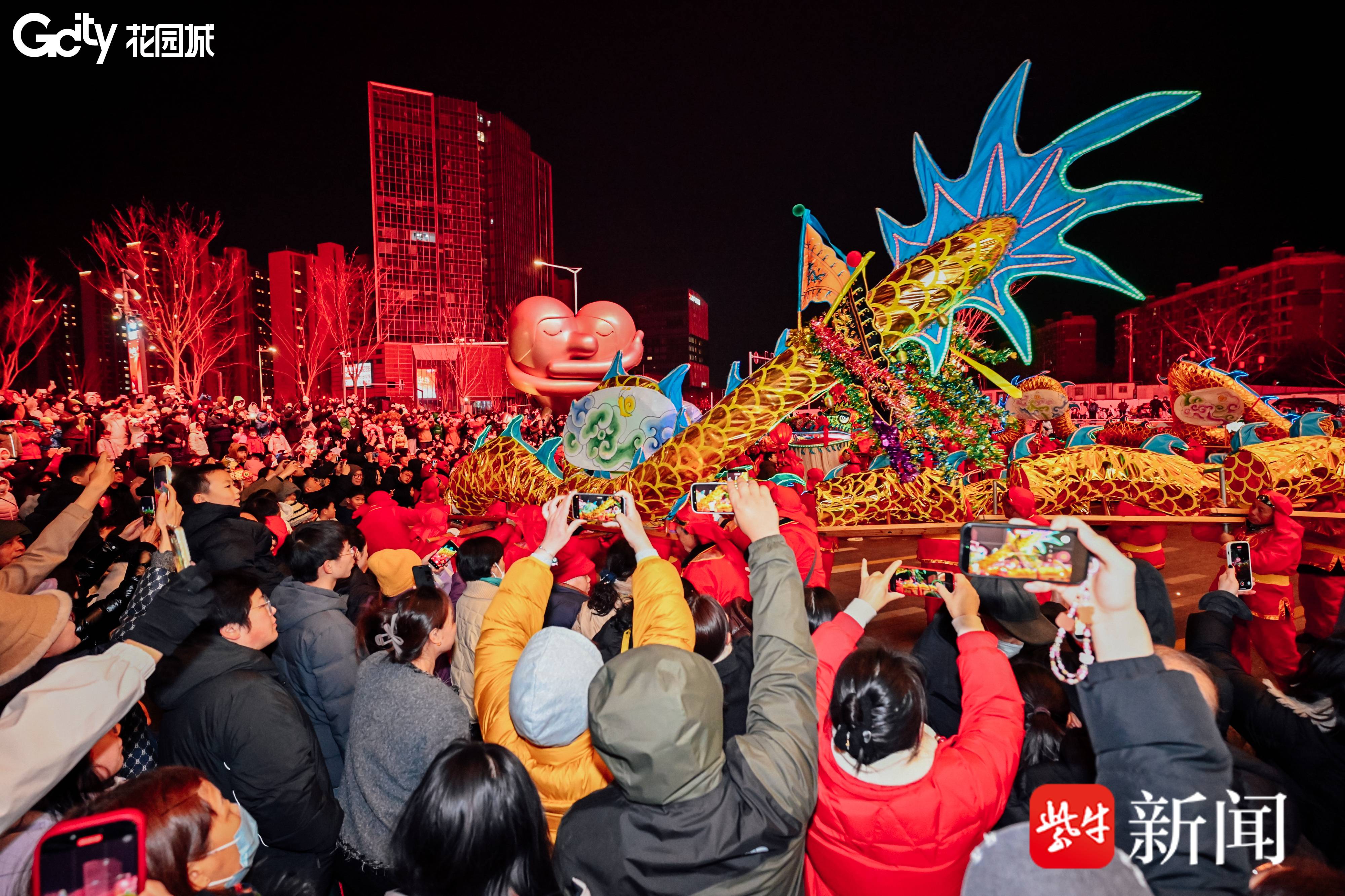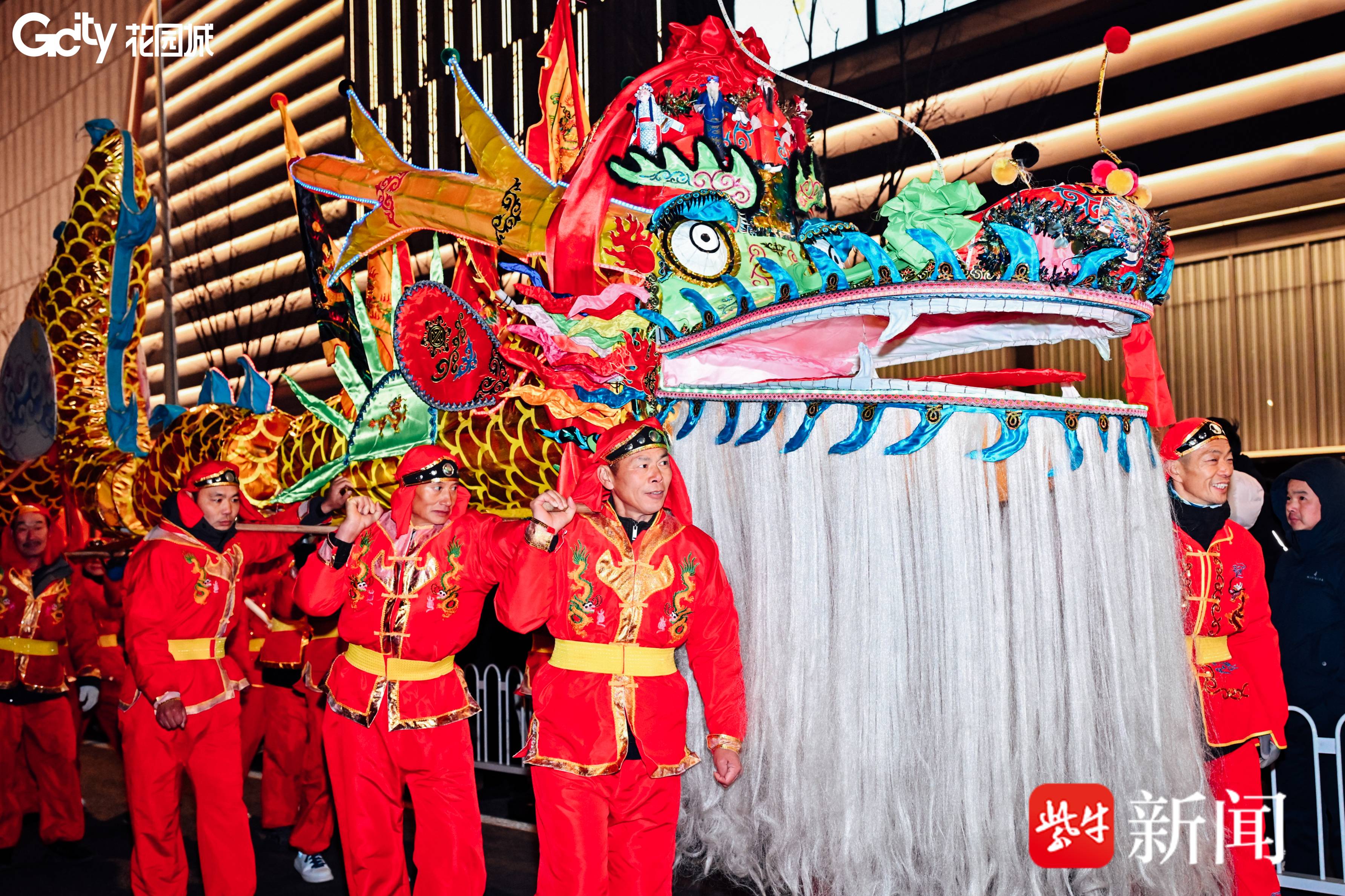 210米板龙,300人共同舞动!南京玄武花园城非遗连台,火壶与板龙点燃金陵夜