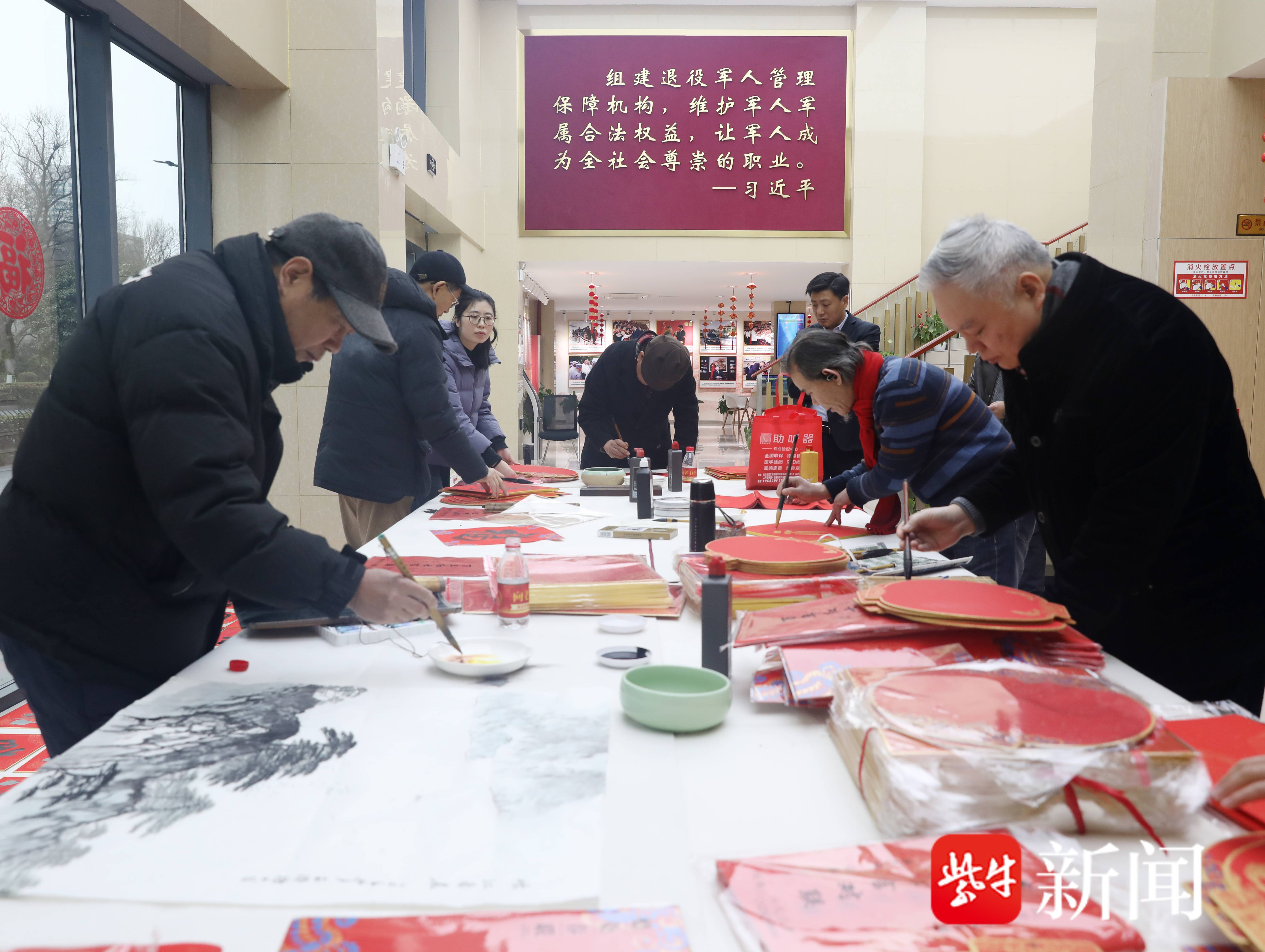 扬子晚报网2月9日讯(通讯员 刘海瑞 记者 闫春旭)翰墨融情迎新春,祝福满满暖人心。新春佳节到来之际,南京市玄武区退役军人事务局邀请5名知名书画家来到玄武区退役军人之家,为前来咨询政策、办理业务的退役军人和军属现场创作春联、年画。