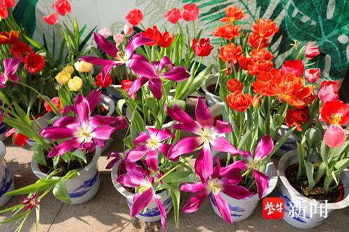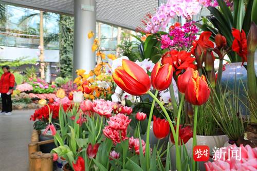 扬子晚报网2月11日讯(通讯员 耿茂林 徐福庚 记者 闫春旭)春节前夕,南京中山植物园南园温室化作一片花海,以“花马献瑞,马上花开”为主题的年宵花展正酣。郁金香、牡丹等百余种花卉竞相绽放,将温室装点成流光溢彩的立体画卷,吸引众多市民游客驻足观赏。