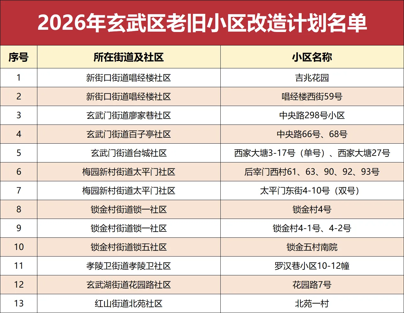 13个老旧小区纳入改造范围!南京玄武区2026年老旧小区改造计划公布