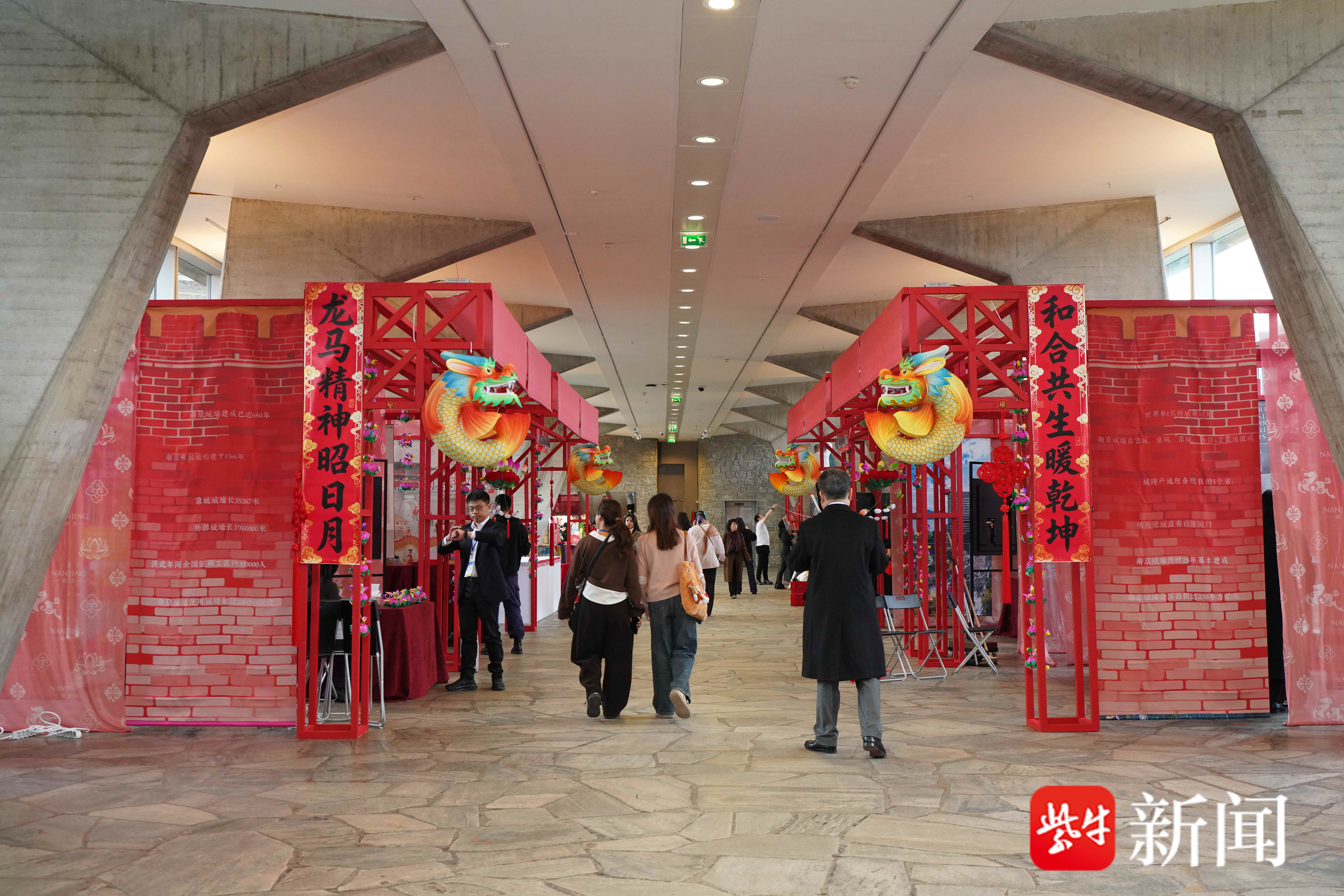 步入会场,最引人注目的莫过于一副气势恢宏的红底金字春联:“龙马精神昭日月,和合共生暖乾坤。”这一抹鲜亮的“中国红”,遥相呼应着万里之外南京城墙上延续多年的春节民俗——每逢新春,高达15米的巨幅春联都会悬挂在660年历史的古城墙城门之上。这种对传统习俗的传承延续,早已成为凝聚南京市民“社区认同”的情感纽带。