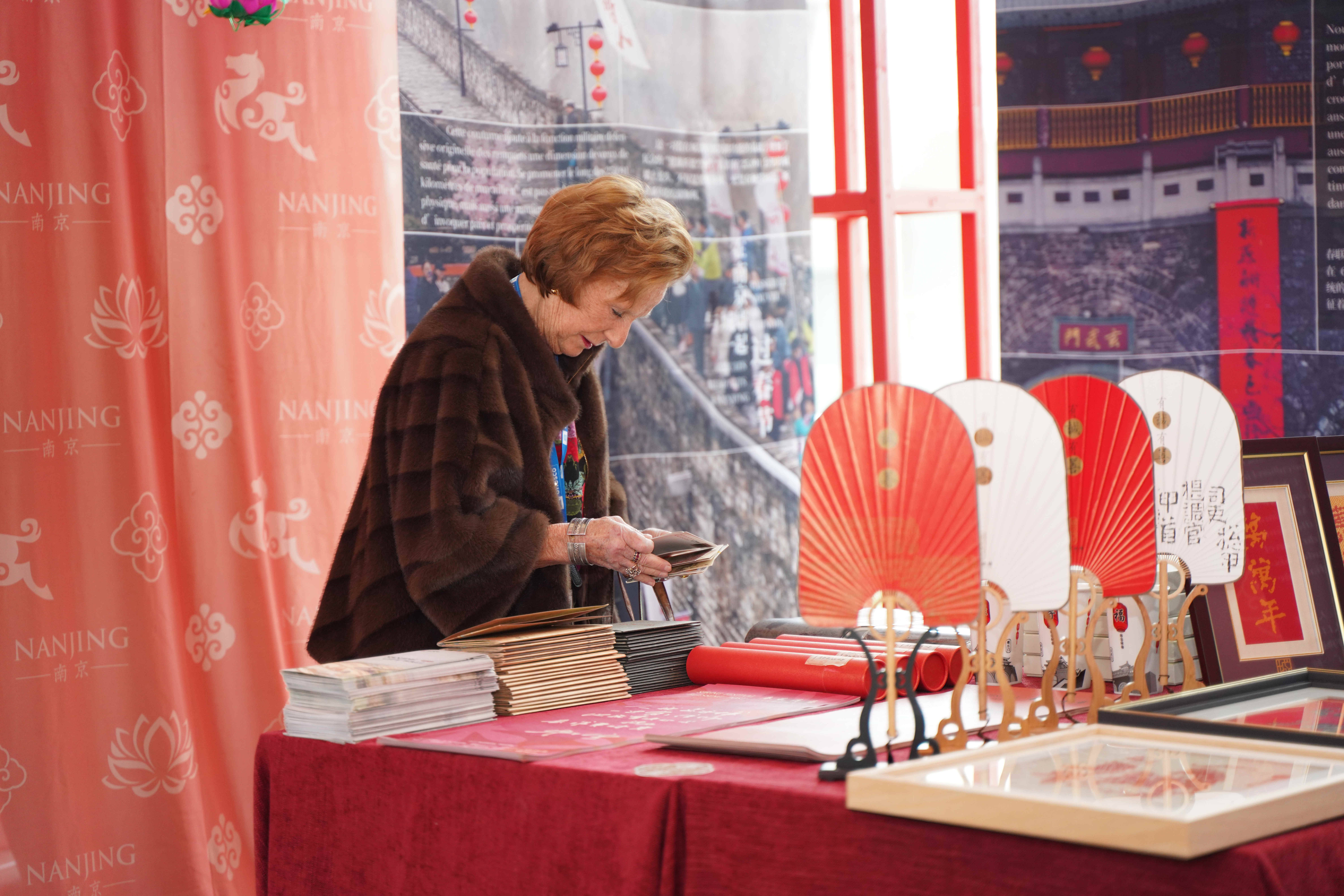在秦淮花灯展区,鱼龙灯、荷花灯等传统花灯依次排开,实物展示与匠人故事影像相映成趣,生动还原了“一盏花灯映千年”的传承脉络。工作人员细致讲解着花灯的制作工艺与历史渊源,各国嘉宾驻足详观,不时俯身查看花灯细节,并就中国传统手工艺的当代传承与保护状况进行深入询问。  春节期间,秦淮河畔灯火璀璨,这些花灯不仅承载着团圆的美好寓意,更是连接古今的文化纽带。