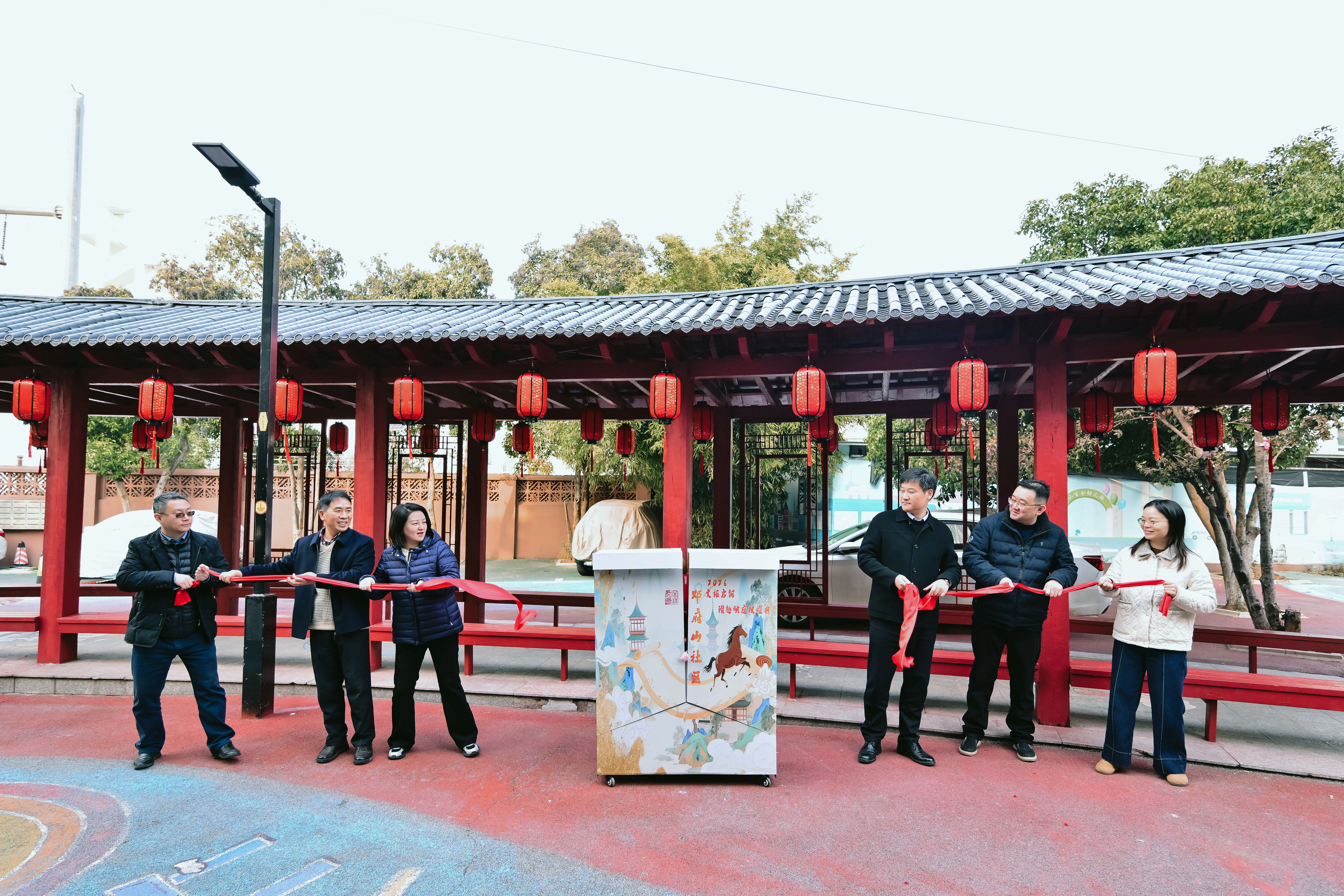 2月10日下午,南京市雨花台区赛虹桥街道邓府山社区在社区广场隆重举办“明骧踏雪衔灯至,文澜映月照春新”主题文化活动暨“读书长廊”“童趣乐园”启动仪式。雨花台区商务局、赛虹桥街道党工委、办事处相关领导,共建单位代表、社区党员群众、新业态群体代表等齐聚一堂,共迎新春,共话治理,共启社区文化服务新篇章。