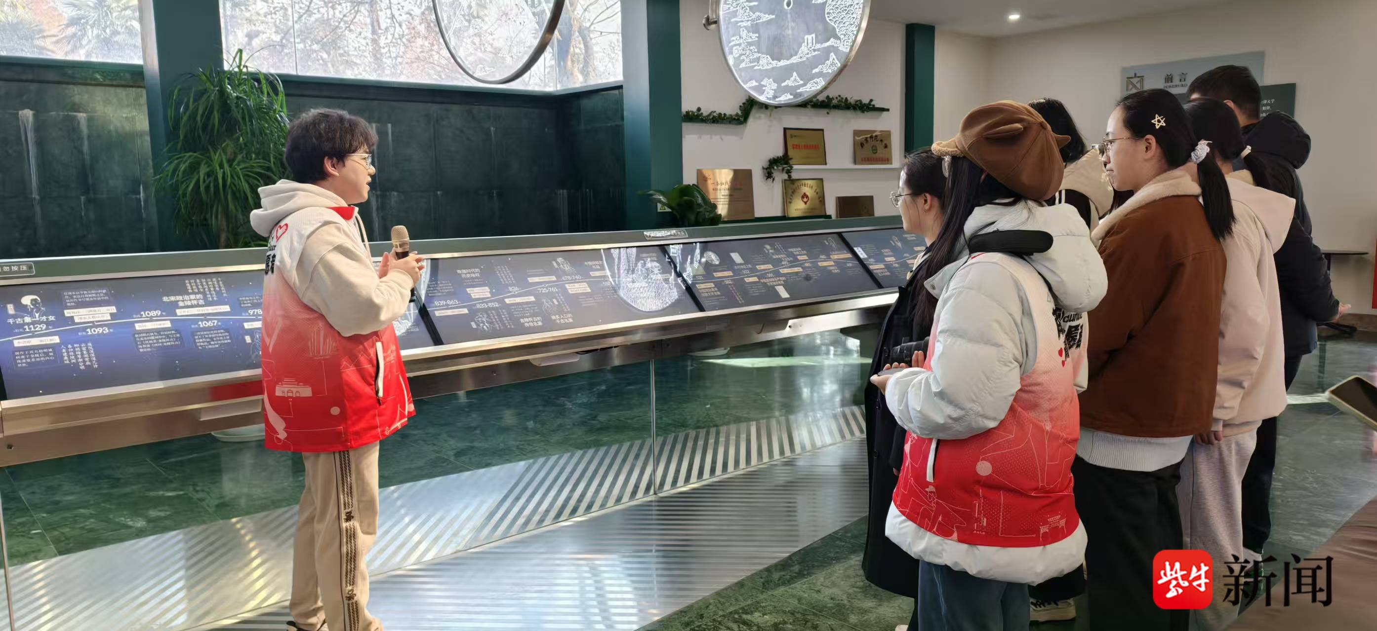从梅庵步行几分钟,就到了附近的“文都南京”展区,门口挂着的001号“世界文学之都”官方认证铜牌格外醒目。讲解员陈杰没跟大家啰嗦史料年份,直接拎出两个最有意思的亮点:南朝时这里诞生了中国最早的文学馆,算是官方文学教育的雏形;明代“十竹斋”的雕版印刷更厉害,靠饾版和拱花这两项绝技,玩出了世界彩色套印的经典——饾版是将彩色画稿按色分解,镌刻成多块小雕版逐色套印,拱花则是不用油墨,仅靠雕版压印让纸面浮现凹凸花纹,二者结合能让作品兼具色彩层次与立体质感。在被问及最想向参观者传递南京文学的哪种特质时,陈杰毫不犹豫地给出答案:“延续性。”他解释道,南京能成为世界文学之都,靠的就是这份从六朝延续至今的文学底蕴,“不管经历多少战乱,不管是不是都城,这座城市的文学气质从来没断过。”体验区里,亲手拓印一张雕版作品的环节颇受欢迎,金科大三学生朱皖清体验后,对着刚拓好的作品连连感慨:“太神奇了,用这么朴素的方式就能实现印刷,古人的智慧真的让人惊叹。”她还说,这次研学里听到的六朝文人诗词、近代南京的文学故事,也让她真切感受到“南京是一座文学底蕴特别深厚的城市”。