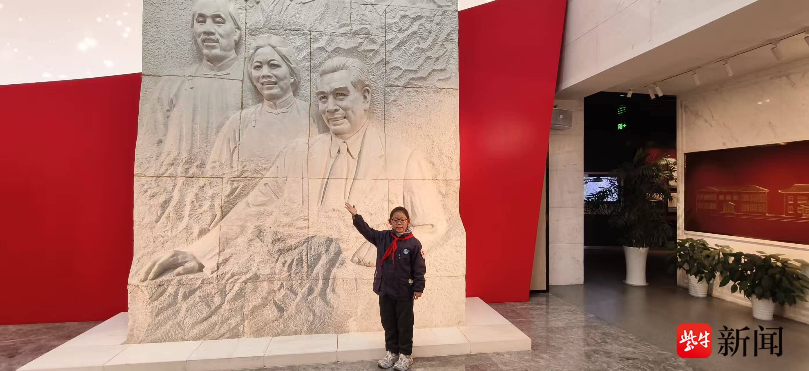 最后一站的梅园新村纪念馆,刚踏入大门,一位红领巾讲解员就站在周恩来铜像前。她仰着小脸,眼睛亮晶晶地抬手指向铜像的右手,“大家看,周爷爷的这只手总弯着放在口袋里。”她顿了顿,蹙了一下眉头接着说:“这是1939年骑马去作报告时意外坠马,导致右臂骨折。当时革命工作太忙,没能及时好好休养,就留下了后遗症。”她又往前凑了半步,声音里带着一丝崇敬:“就算手臂不方便,周爷爷在南京谈判的十个月里,还是坚持为和平事业奔走忙碌。”移步浮雕墙前,又一位红领巾迎上前为我们讲解……看着孩子们认真讲解的模样,听着稚嫩声音里藏着的坚定,才真真切切感受到,红色精神从来不是尘封的历史,而是真真切切在一代代人之间传下去。