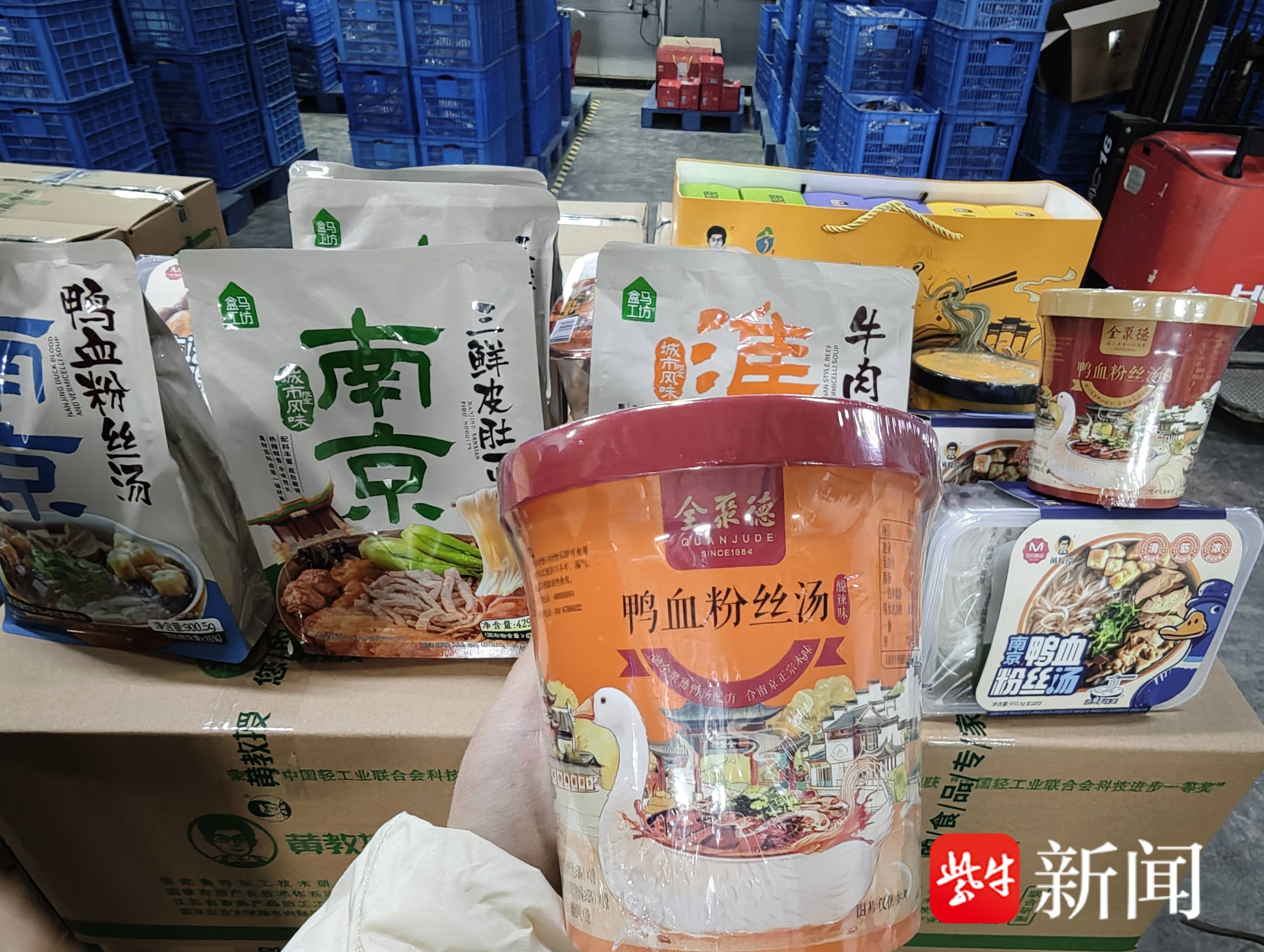 在包装车间,记者还看到了淮南牛肉汤、鸭血粉丝汤、三鲜皮肚面等方便食品。值得注意的是,鸭血粉丝汤有南、北方不同的口味,“南京这边鸭血粉丝汤要有豆腐果,而给全聚德定制的鸭血粉丝汤配料里就没有豆腐果。他们将鸭架寄过来,我们熬成汤、做成料包。”黄明说。