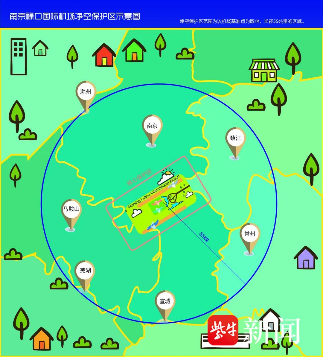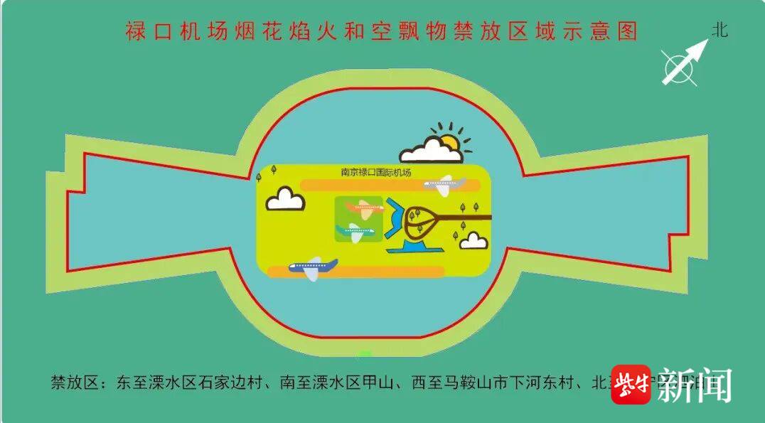 在南京机场净空保护区,除了严禁燃放烟花、放飞无人机、孔明灯与空飘物之外,也禁止使用激光笔照射天空。同时,超高临时建筑、广告牌这类未经许可的高耸物体可能侵入飞机起降航道,增加起降风险。