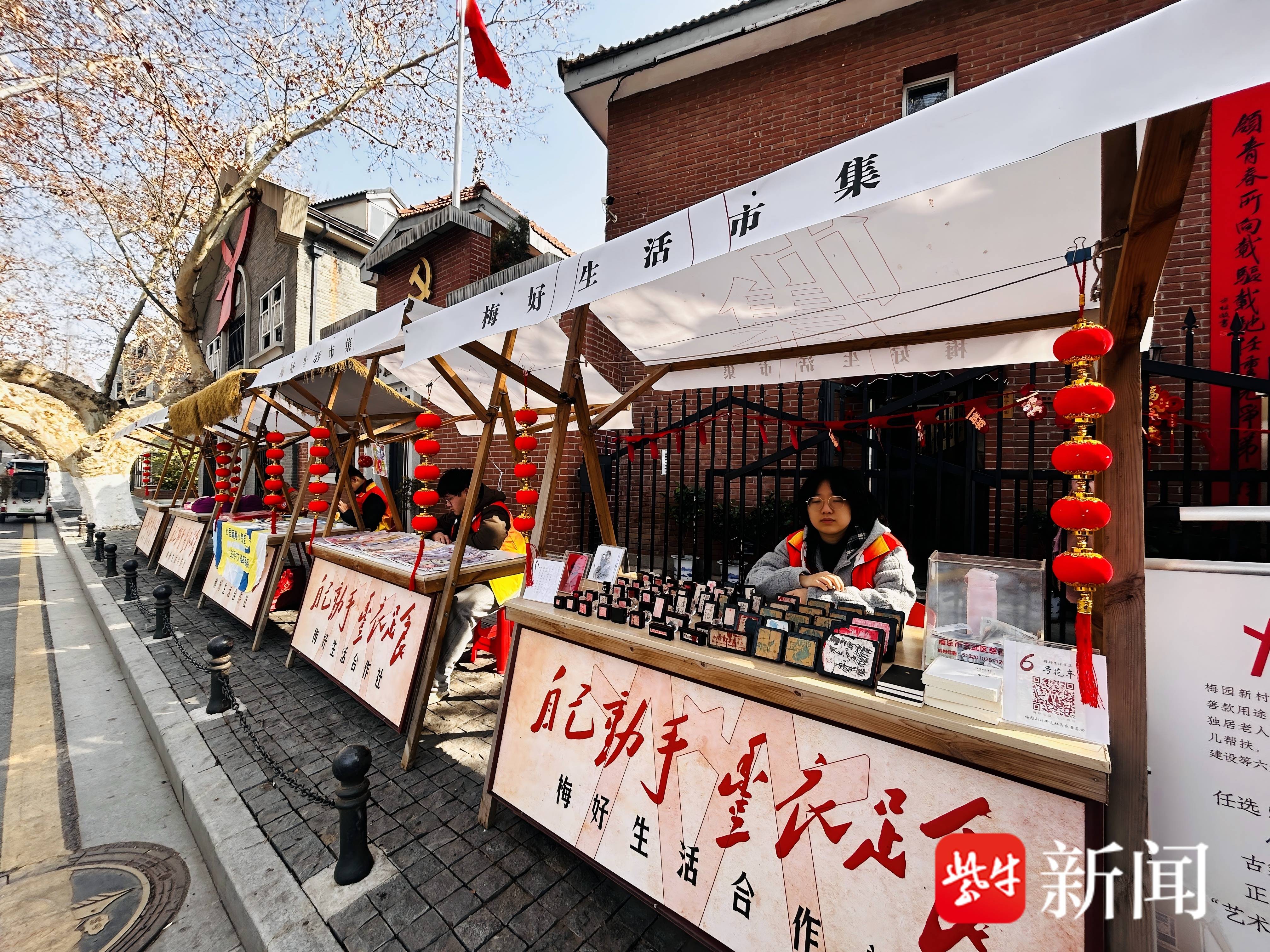 梅好生活空间门口的新年慈善公益市集“微庙会”红红火火,通过线上“公益宝”平台捐款后可参与有奖问答等趣味互动、兑换马年文创年礼,所有善款进入梅园新村街道社区慈善基金,用于梅园新村街道辖区帮扶助困和社区公共事业发展等六大基层治理项目,形成了喜庆欢聚与“善治融合”的春节新年俗。