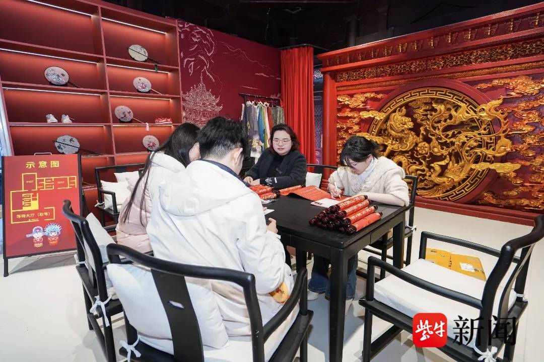玄武区民政局婚姻登记处特别举办“迎马年新春”主题颁证,创新打造了一场承载山水诗意的缔盟仪式。在两姓联姻的庄重时刻,湖光为幕、年味为韵,新人们于此间奔赴良缘之约,开启并辔同行的幸福新程。古韵悠然的庭院里,新人将手写的婚姻期许系上“福・缘树”枝头,以“一纸红笺系良愿”的东方浪漫,寄寓“心愿落地,幸福生根”的美好愿景。在“众创空间”互动区域,特邀老师为新人们手书传统婚书,以笔墨传承“敬慎持躬、宜家宜室”的深厚婚俗文化。完成登记的新人均可获得由优质商家提供的婚庆婚宴代金券,还可凭结婚证参与现场互动,领取马年福利彩票和咖啡热饮,扭出童趣扭蛋机专属纪念好礼,另有10对幸运新人参与“幸福咖啡馆”双人手作体验。