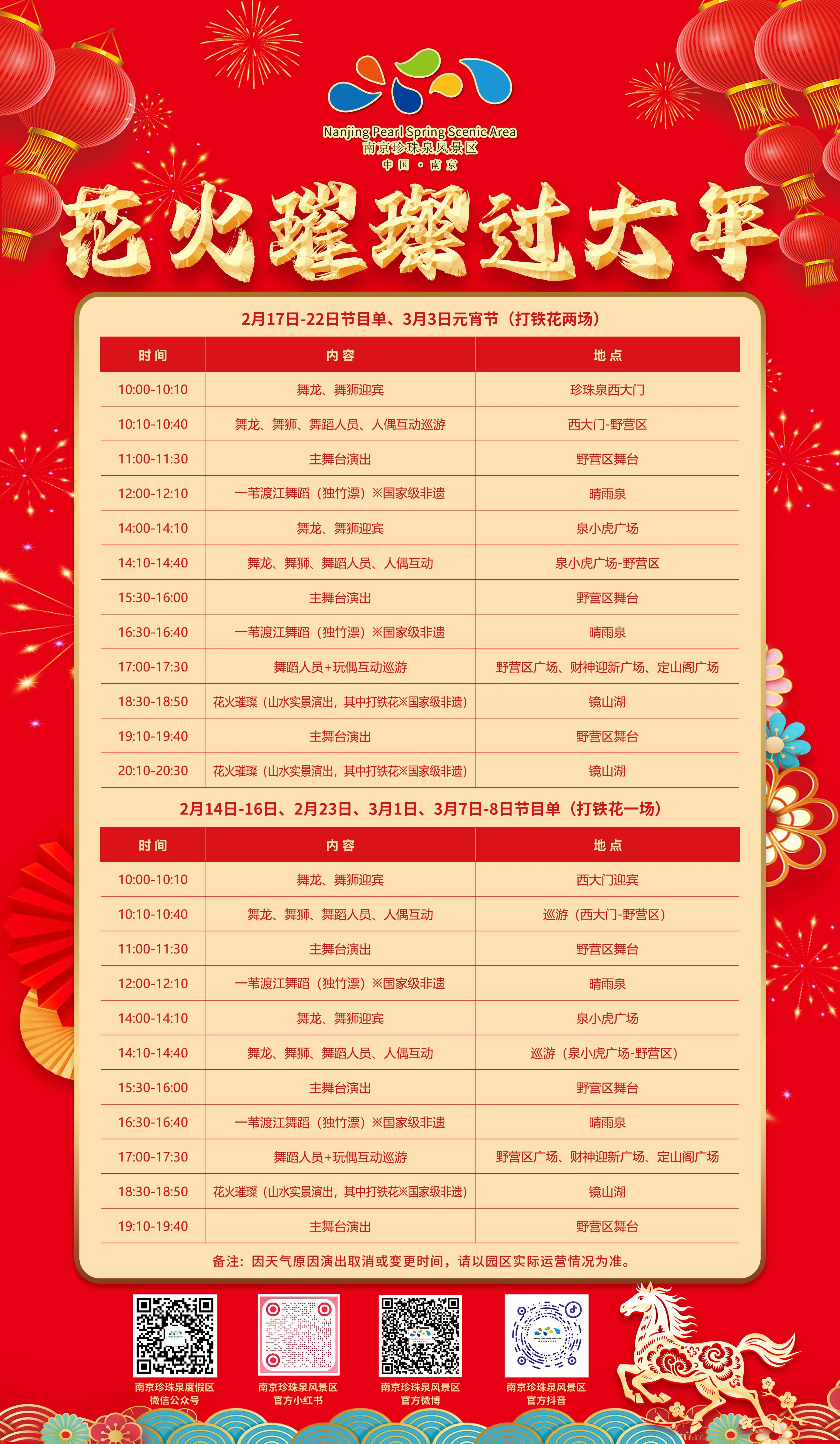 扬子晚报网2月15日讯(记者 刘丽媛)你上一次来珍珠泉,是什么时候?是小学的春秋游?或者是大学时候的“烧烤局”?如今,这个“老派”景区变了——从2月14日到3月8日,南京最大山水实景打铁花,带你领略漫天金焰的绚烂!