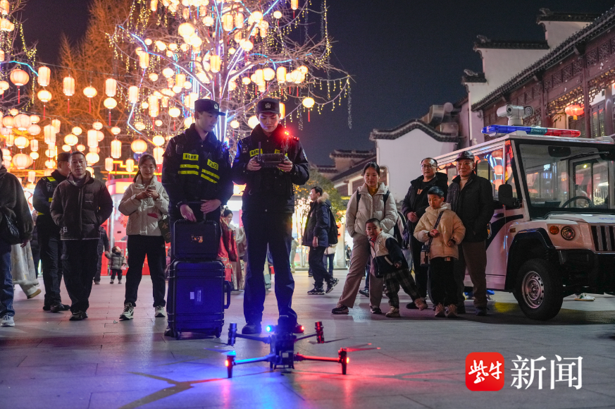 结合去年大客流安保经验,秦淮警方打造起“空中+地面”全域覆盖的立体防控体系。“我们在景区周边布设了六个无人机方舱,让无人机成为大客流安保的‘千里眼’和‘传声筒’。”秦淮分局夫子庙派出所所长朱明浩介绍,无人机能及时发现人流堵点,并直接通过语音引导游客有序通行。