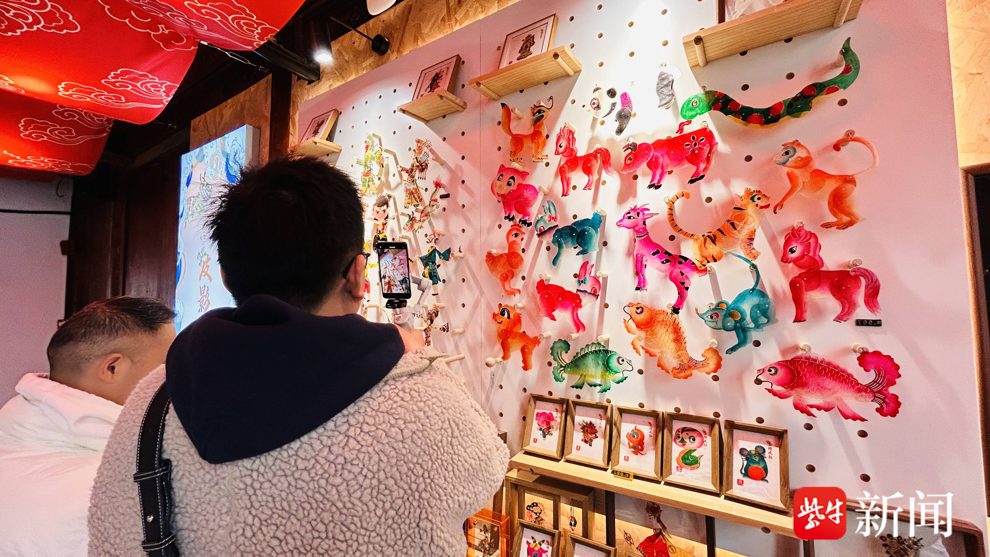 传习馆另一侧的戏台上,金陵皮影戏第四代传承人陶媛媛正挥舞竹签,为台下观众演绎《西游记》中三打白骨精的经典片段,引得阵阵掌声。陶媛媛介绍,每个周末与节庆期间,团队都会在这里带来皮影戏演出,今年还专门创作了多款马主题作品,“我们设计了萌趣的唐马造型,融入幸福花、钱币纹样,打造出‘马上有钱’等寓意吉祥的新春作品。”
