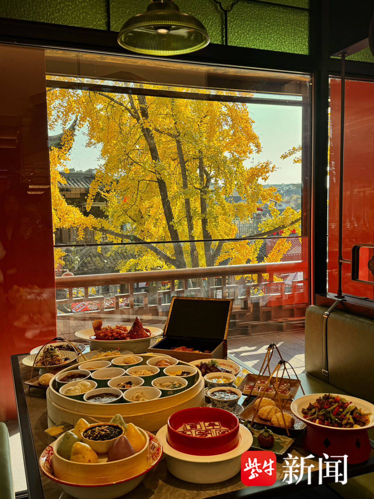莲湖糕团店隔壁的奇芳阁,更是南京老字号里的“百年常青树”。这家1920年创立的中华老字号,不仅是省级非遗“秦淮传统风味小吃加工制作技艺”的传承保护基地,更与朱自清、张恨水等文化名人渊源深厚,本身就是一部浓缩的金陵文化史。春节期间,改造升级后的门店与夫子庙新春氛围完美相融,在保留明清建筑风貌的基础上,内部巧妙融入剪纸、皮影、千里江山图等国风元素,通过落地窗将秦淮河景致引入室内,打造出兼具历史感与现代美学的用餐空间;店内还创新性引入国风舞蹈、古筝竹笛等演艺表演,让食客在品尝美食的同时,沉浸式感受秦淮风雅。