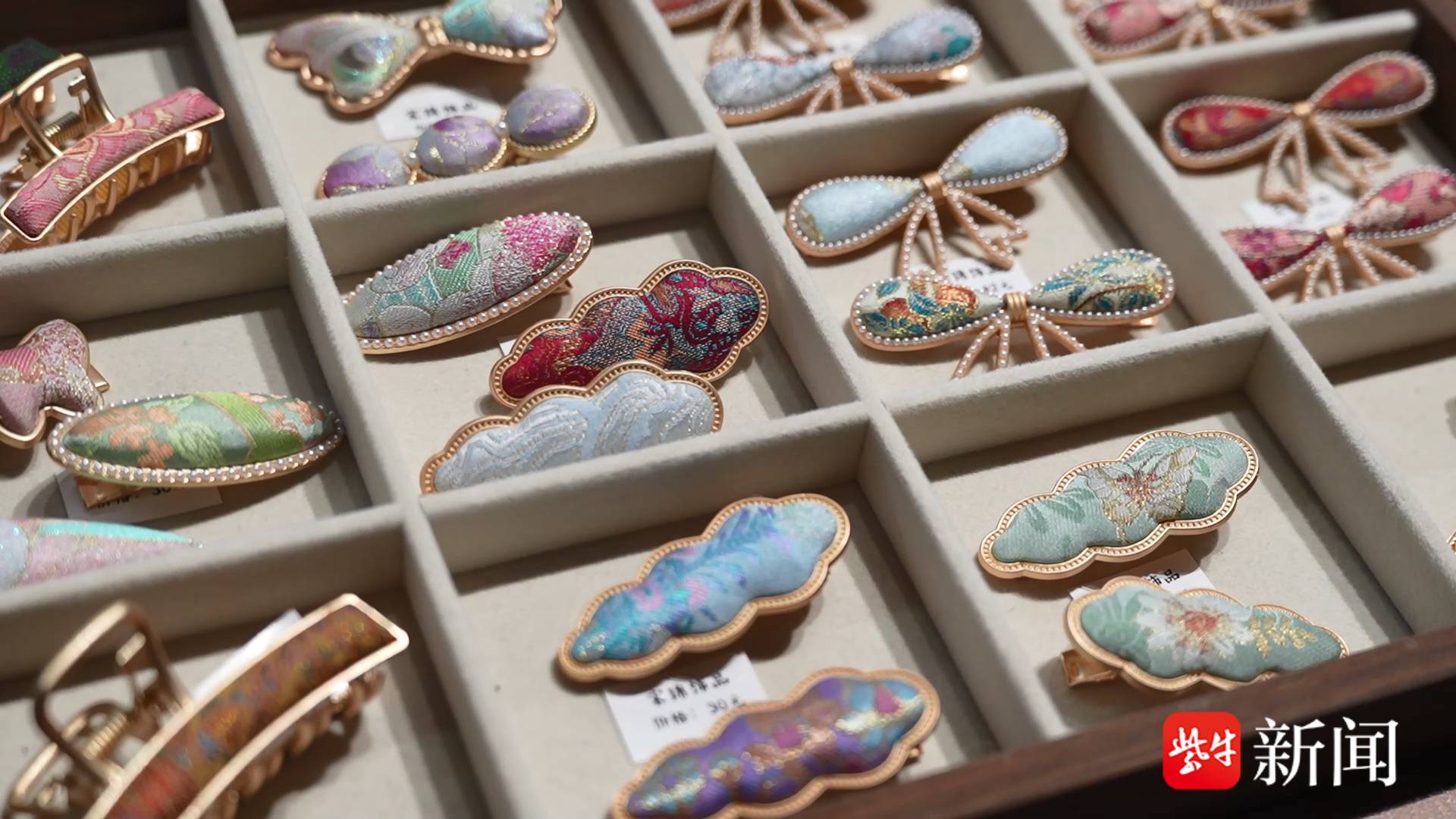 看到身边的年轻人在春节前争相挑选新年配饰,曹媛也萌生了一个念头:若能将宋锦制成日常可穿戴饰品,便能让更多人随时随地感受非遗之美。于是她试做了一些宋锦发夹、胸针赠予亲友,收获的一致好评也坚定了她深耕宋锦饰品创作、传承非遗技艺的决心。
