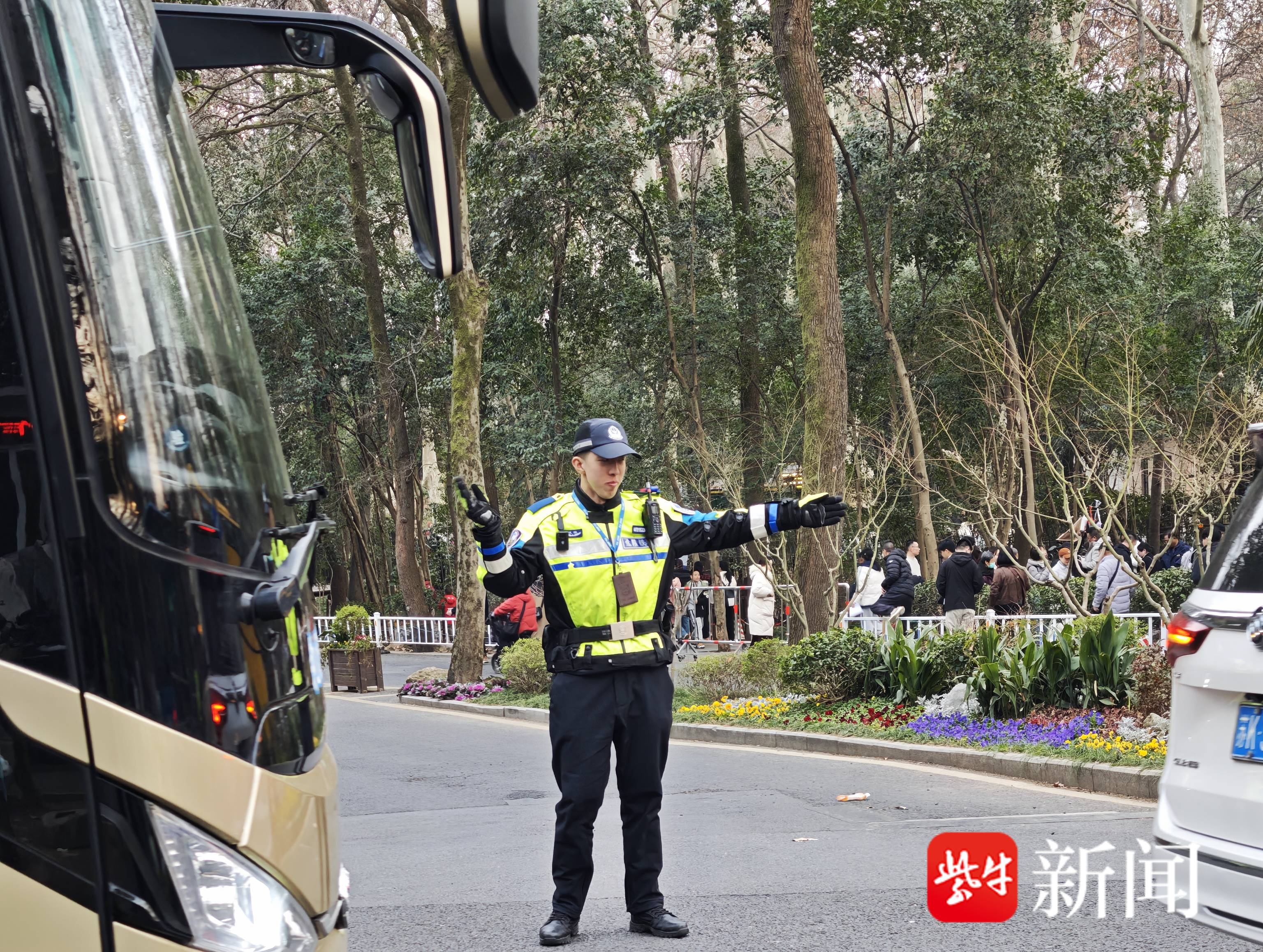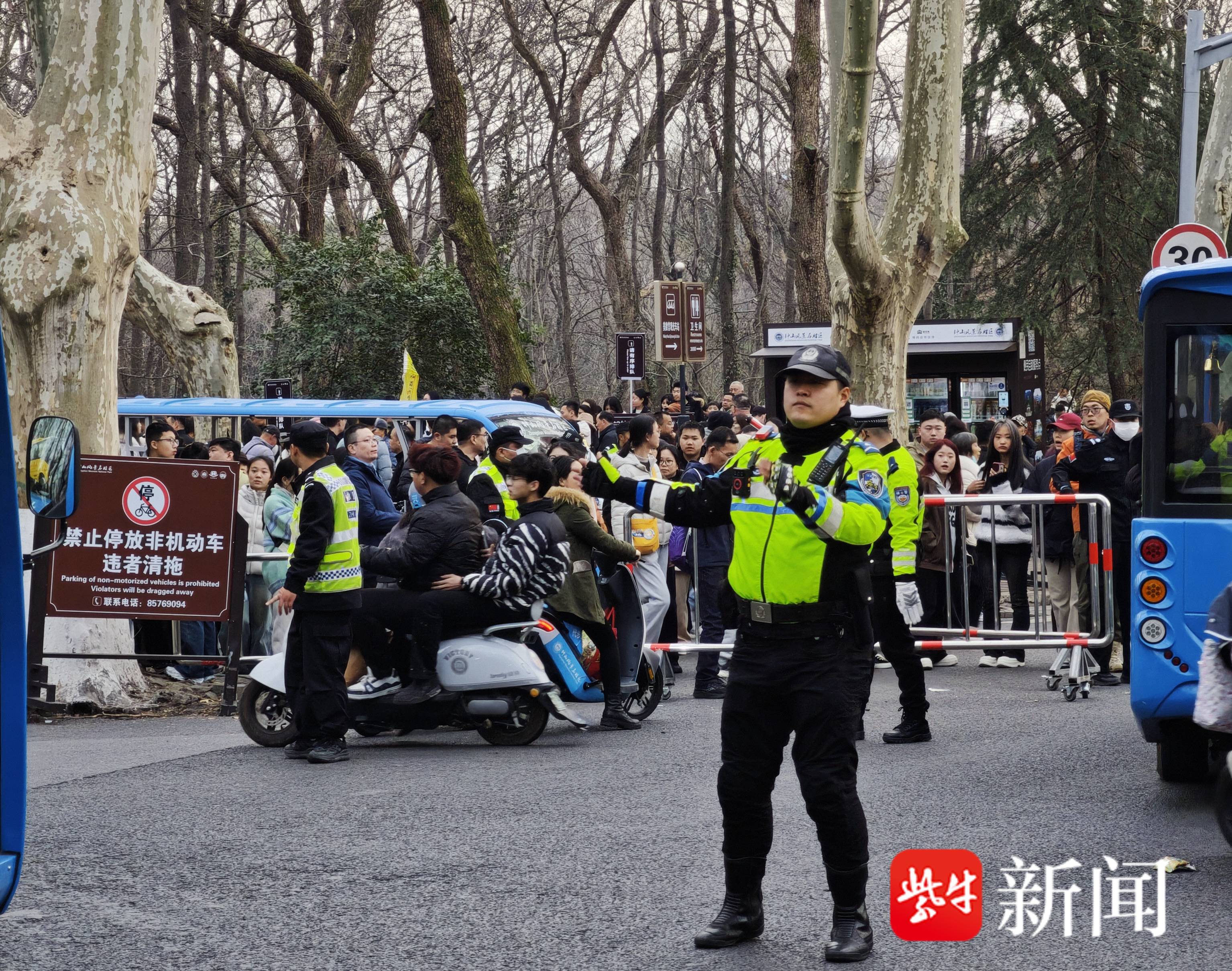 今天上午南京梅花山游客逼近5万人次,太平门路临时管控,公交地铁可直达