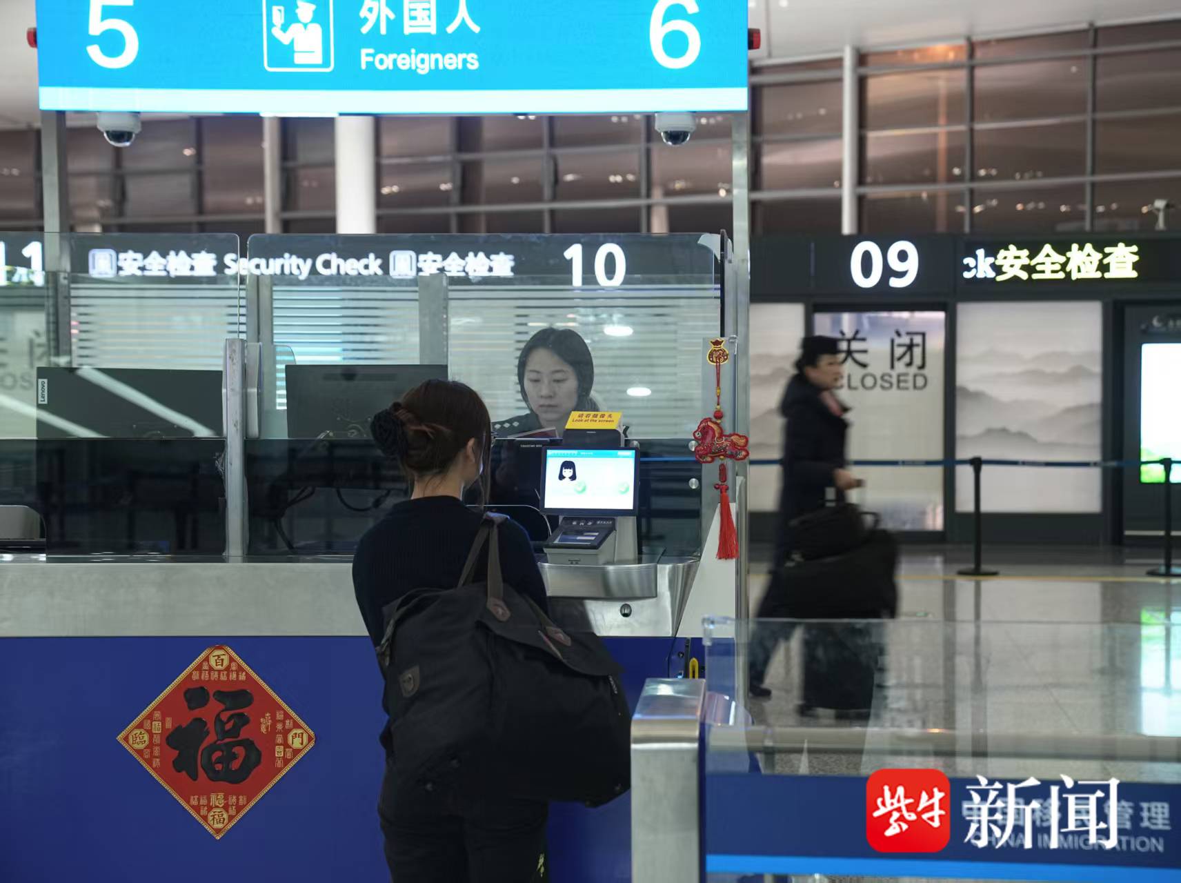 目前,南京禄口国际机场已开通往返欧洲、大洋洲、亚洲等10多个国家(地区)的25条国际航线。随着免签国家范围持续扩大、国际航线网络不断加密,南京空港口岸正迎来越来越大的“开放红利”。据南京出入境边防检查站预测,2026年春节假期(2月15日至23日),南京禄口出入境旅客约7.6万人次,其中出入境外国人约5000余人次。为应对春节客流高峰和免签政策带来的新变化,南京出入境边防检查站科学组织勤务,开足查验通道,加强分流引导,确保中国公民通关排队不超过30分钟。同时,为方便来华体验中国年的外籍旅客,还推行了入境信息申报前置引导等措施,着力提升通关效率,营造便捷温馨的通关环境。