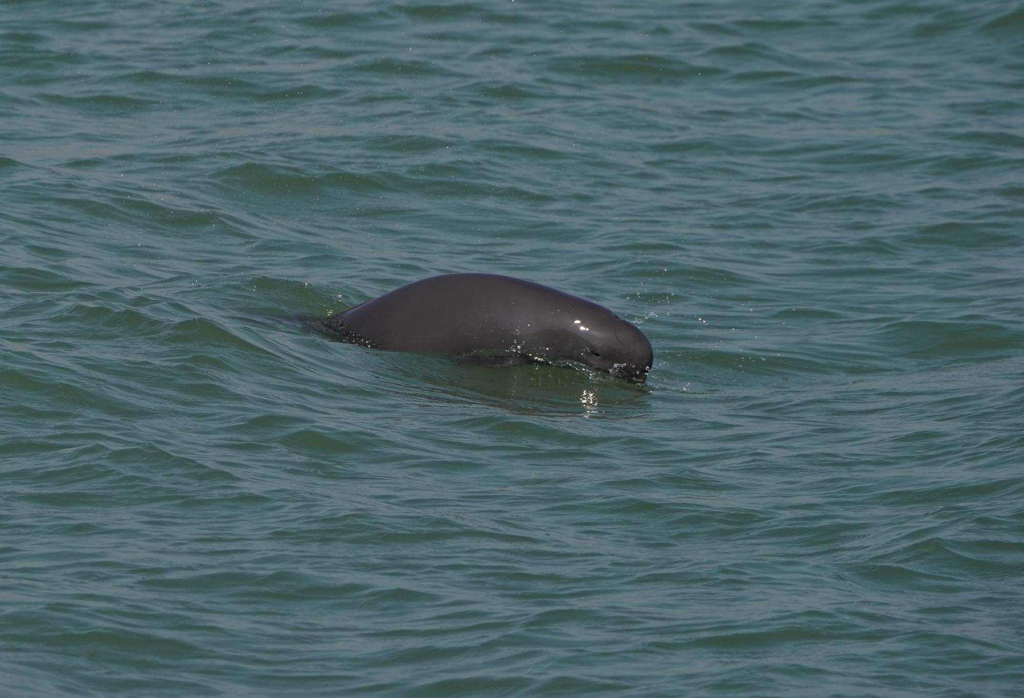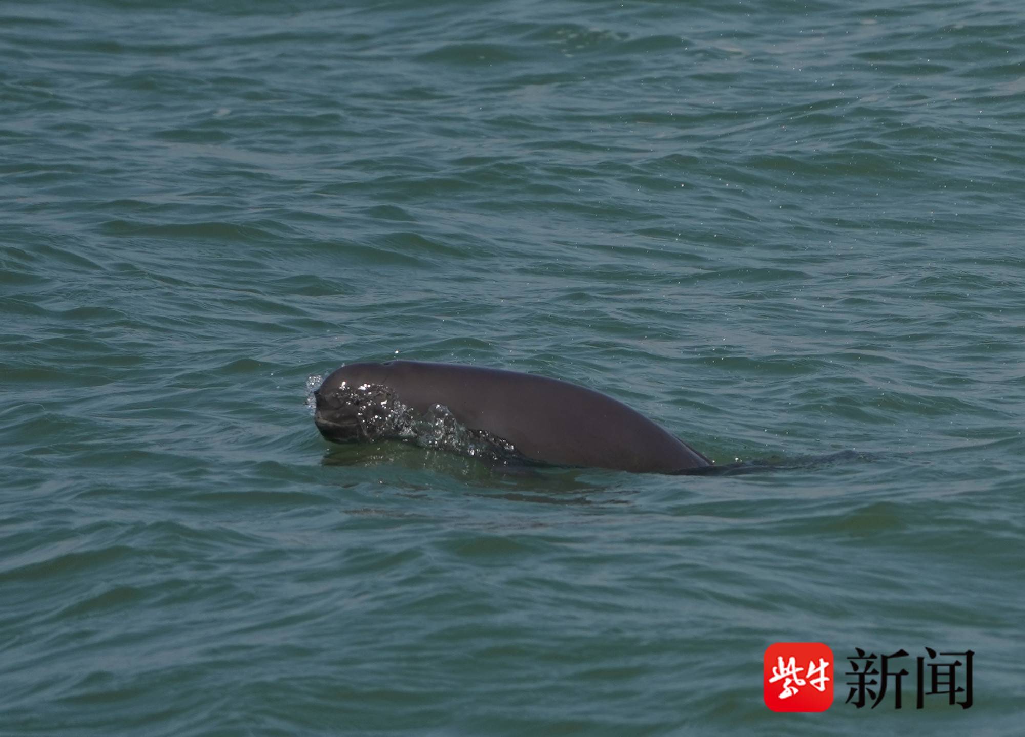 图为江豚逐浪而行