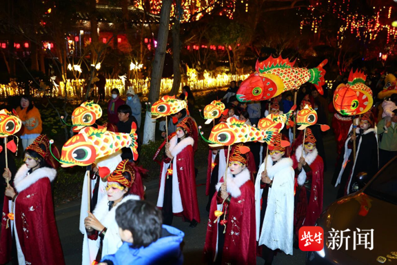 作为栖霞新春顶流,栖霞山“马上吉祥”新春灯会火爆出圈。自贡非遗匠人打造的40余组大型灯组点亮山林,“金马贺岁”“马跃千山”灯组气势恢宏,明镜湖飞天表演衣袂飘飘,鱼灯巡游、舞龙舞狮、锡剧折子戏轮番上演,鼓点铿锵、曲韵悠扬。白天祈福纳祥,夜晚灯影如画,市民游客漫步古山,在千年文脉里感受最地道的中国年。