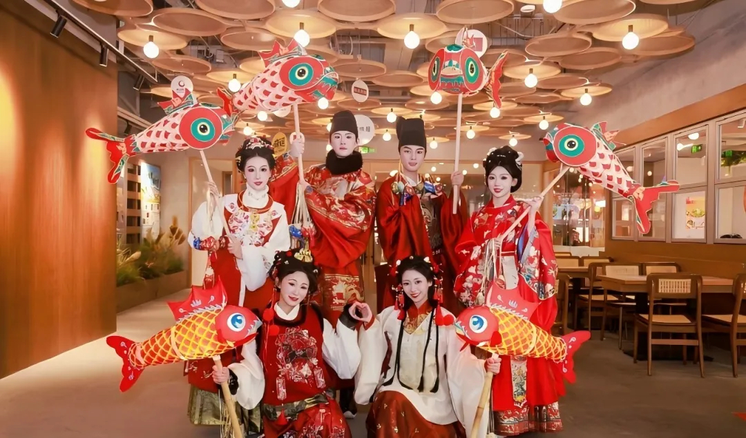 当古风鱼灯队伍穿梭在光影交错的步行街,仿佛一秒穿越。划重点:跟随鱼灯队伍走一圈,沾沾马年好福气!随手一拍就是朋友圈大片,推荐穿汉服来加入队伍哦!