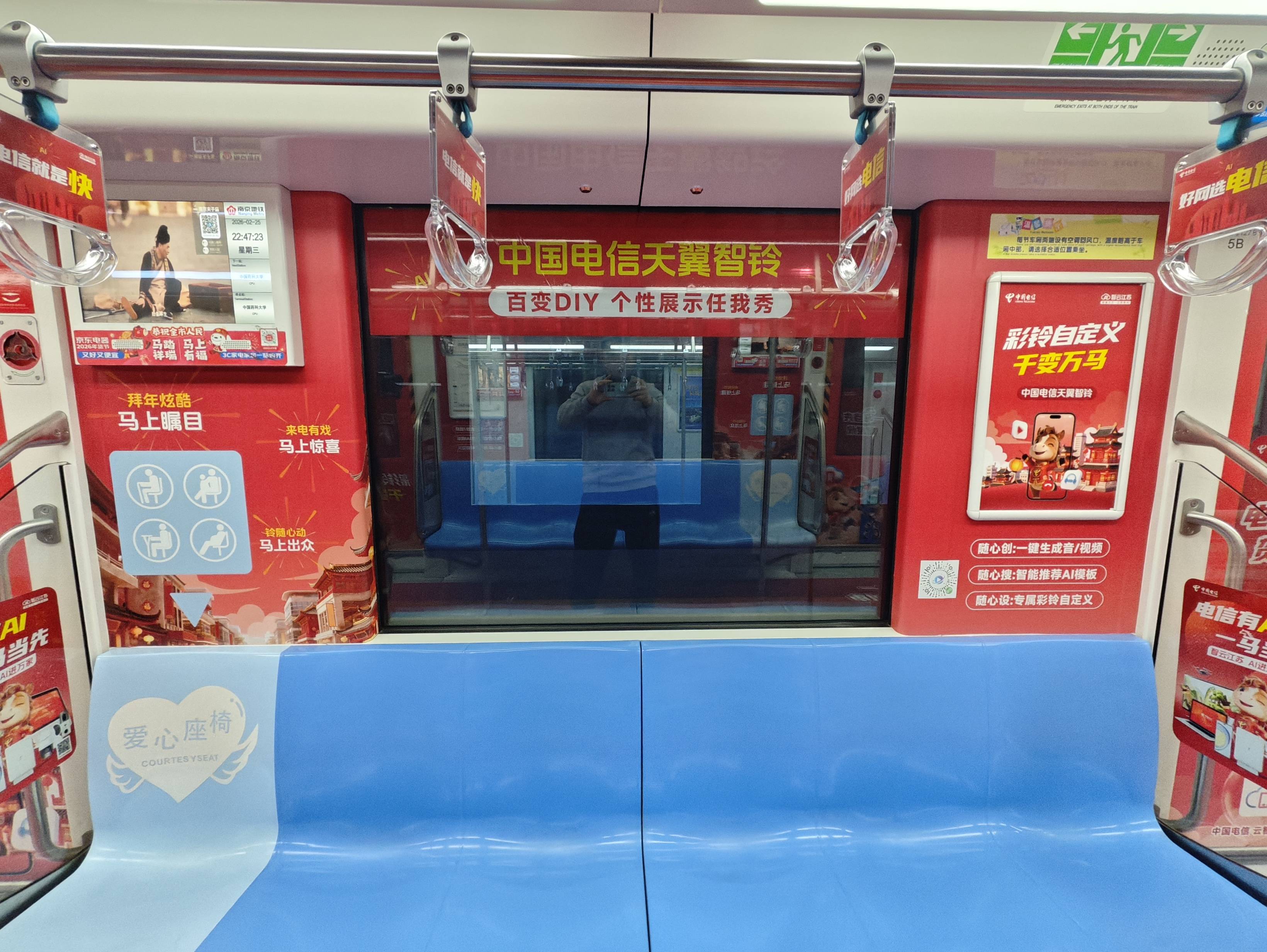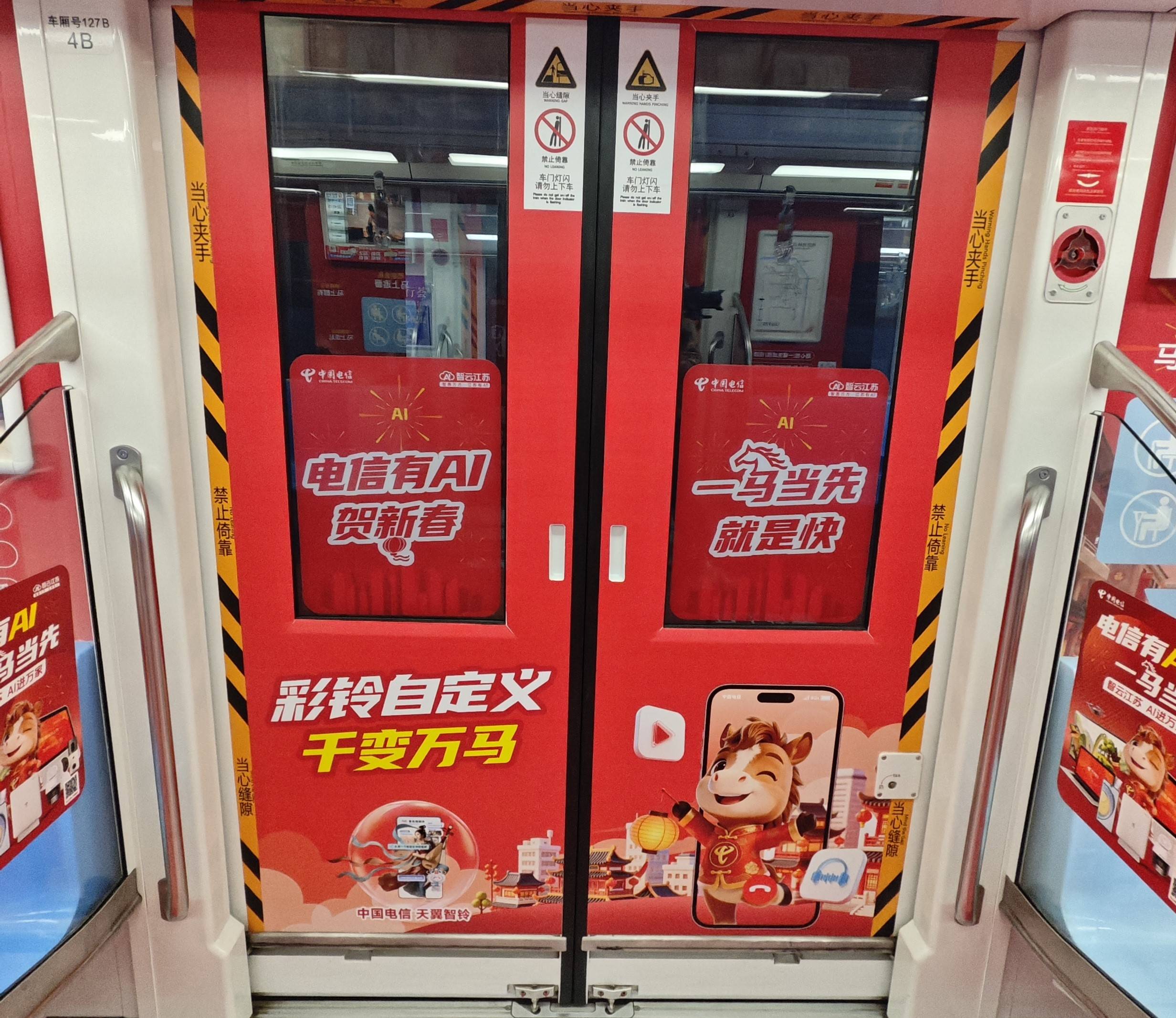 在南京地铁1号线的天翼智铃专列上,一句“智云江苏 AI进万家”道出了江苏电信的新年心意。从“千变万马”的彩铃自定义,到“一马当先”的AI体验,江苏电信正以南京地铁为媒,将天翼智铃的创意魅力传递给更多的市民与乘客。