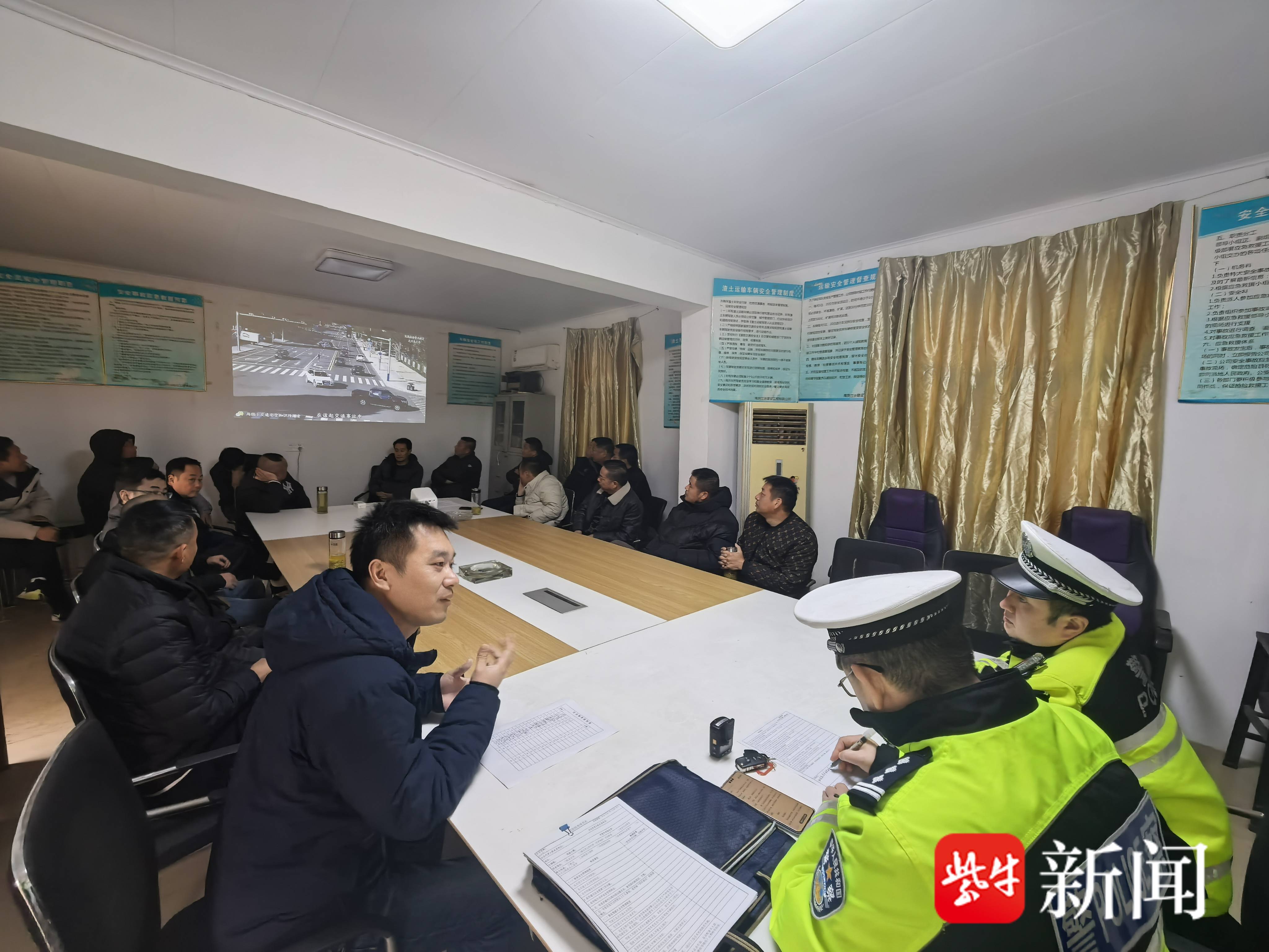 民警结合节后复工复产期间车流、物流集中的特点,聚焦运输行业高频安全隐患,通过“案例宣讲+视频警示”的方式,向企业负责人、安全管理人员及一线驾驶员开展专题宣讲。民警现场播放交通安全警示教育片,真实还原了超限超载、疲劳驾驶、酒驾醉驾、不按规定使用安全带、货车盲区未避让等交通违法行为引发的交通事故,触目惊心的画面、发人深省的案例,深刻剖析了各类交通违法的危害和法律后果,直击驾驶人侥幸心理,强化其安全底线思维,让在场人员深刻认识到“安全是企业最大的效益”。