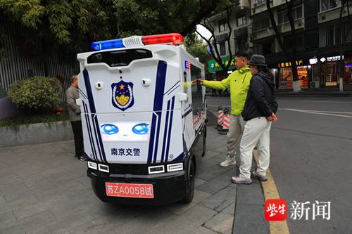 这款无人驾驶“警小宁”巡逻车亮相夫子庙,让人眼前一亮。尤其是那双“大眼睛”和不断闪烁的雷达探头,科技感十足,吸引游客驻足观看。 据悉,这款无人驾驶AI巡逻车是南京交警联合智慧交通企业自主研发的智能安防与服务终端,主要承担交通引导、安全预警和便民服务三大功能。