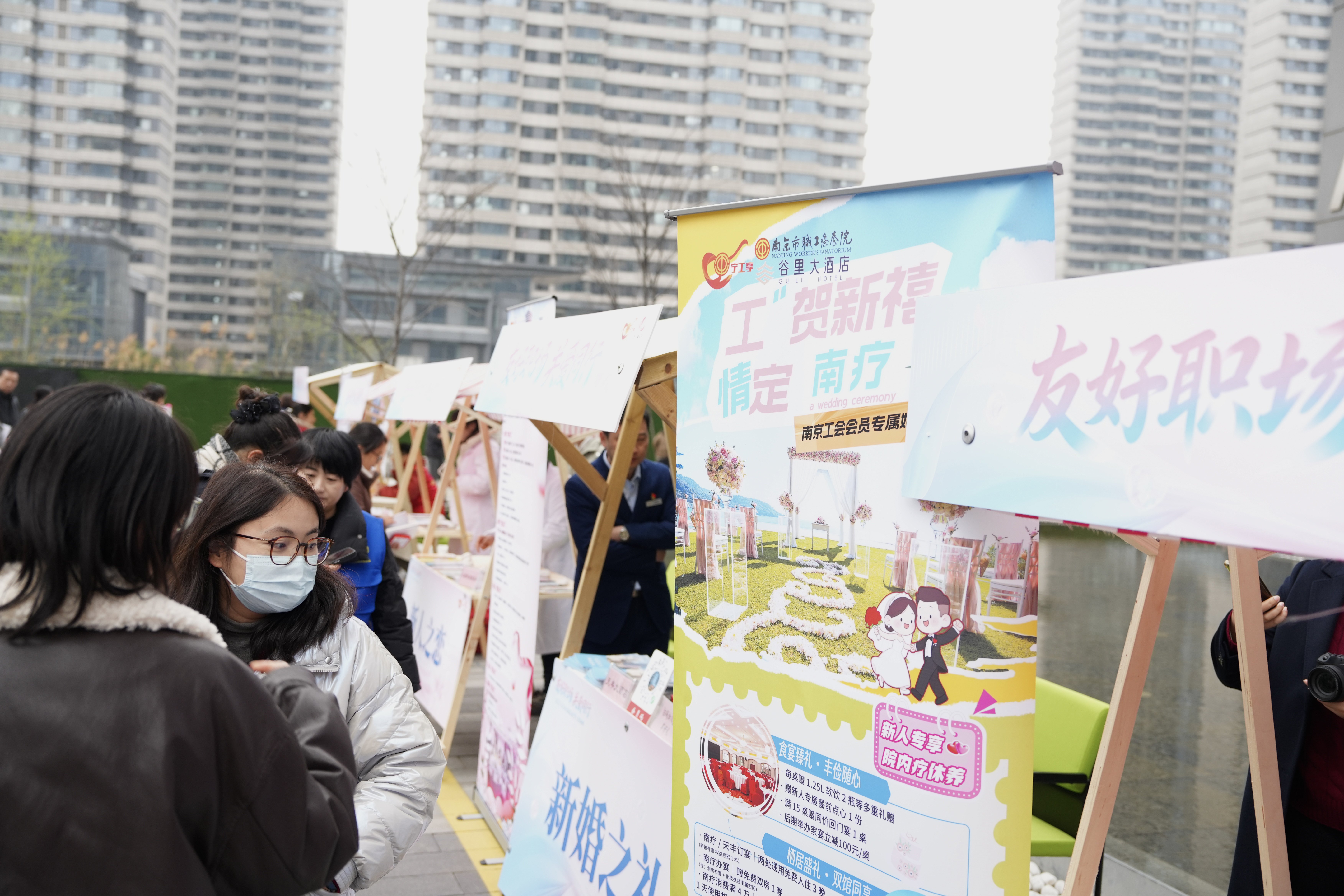 “新人之恋”专区提供婚恋心理辅导、职场家庭压力平衡咨询;“新婚之礼”专区整合优质资源,推出婚礼场地、婚纱摄影等专属优惠;“新寓之家”专区精准宣讲鼓楼区青年人才房票政策,详解申请流程;“新育之策”专区发放托育服务地图与母婴健康手册,提供孕期指导、中医义诊等健康服务;“新技之能”专区开展女职工权益普法宣传,提供创就业与返岗技能培训指导;“新风之尚”专区以家风家训寄语墙为载体,邀请亲子家庭写下美好祝福,传承优良家风。