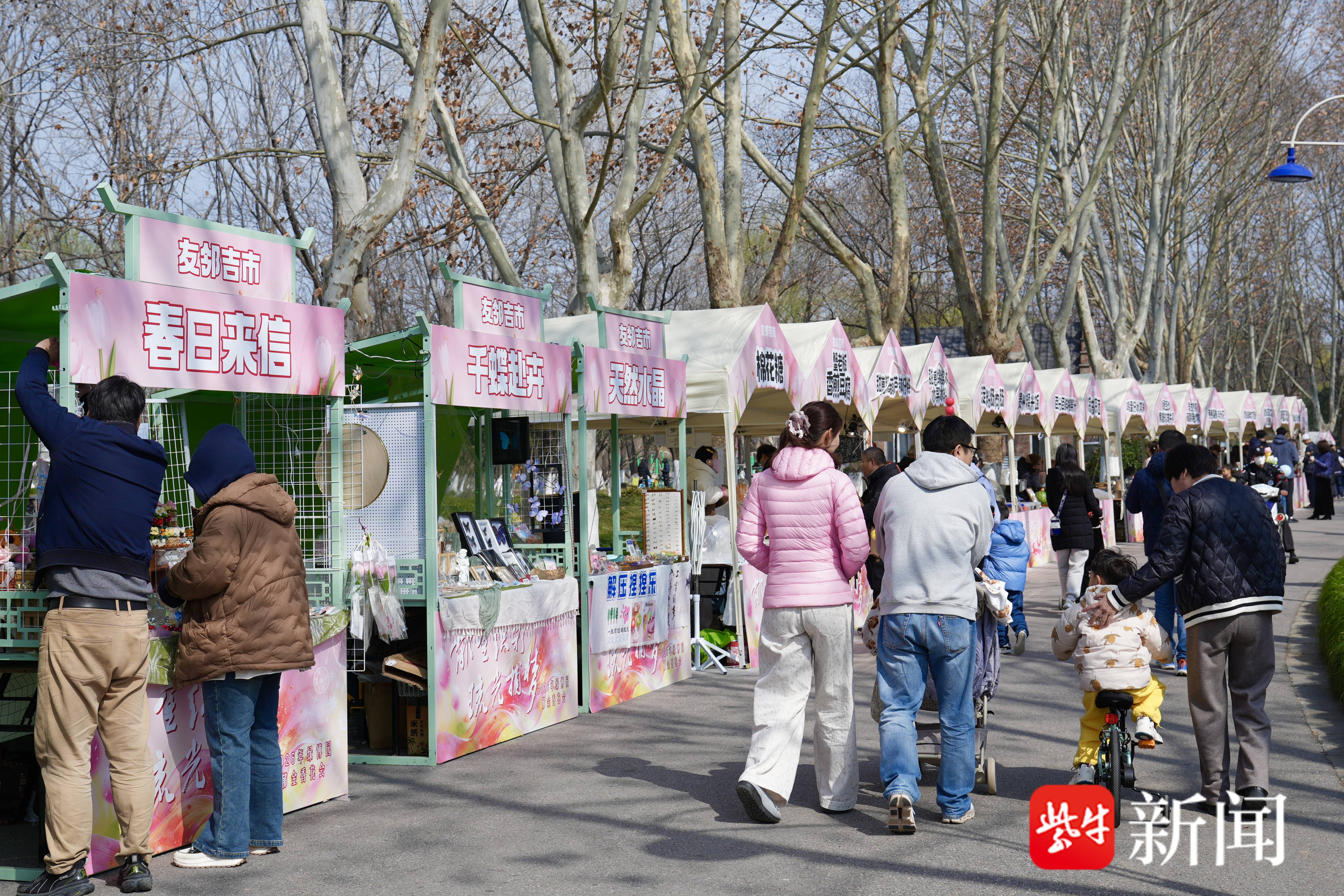 郁金香市集将设绿博园和鱼嘴公园两大会场,风味小吃、文创好物琳琅满目,赏景逛吃两不误。此外,公园公司再度携手南京河西金地商场,在商场中庭打造“漫游春日 郁见梦境”主题分会场,让市民在购物休闲之时感受春日浪漫与生机。