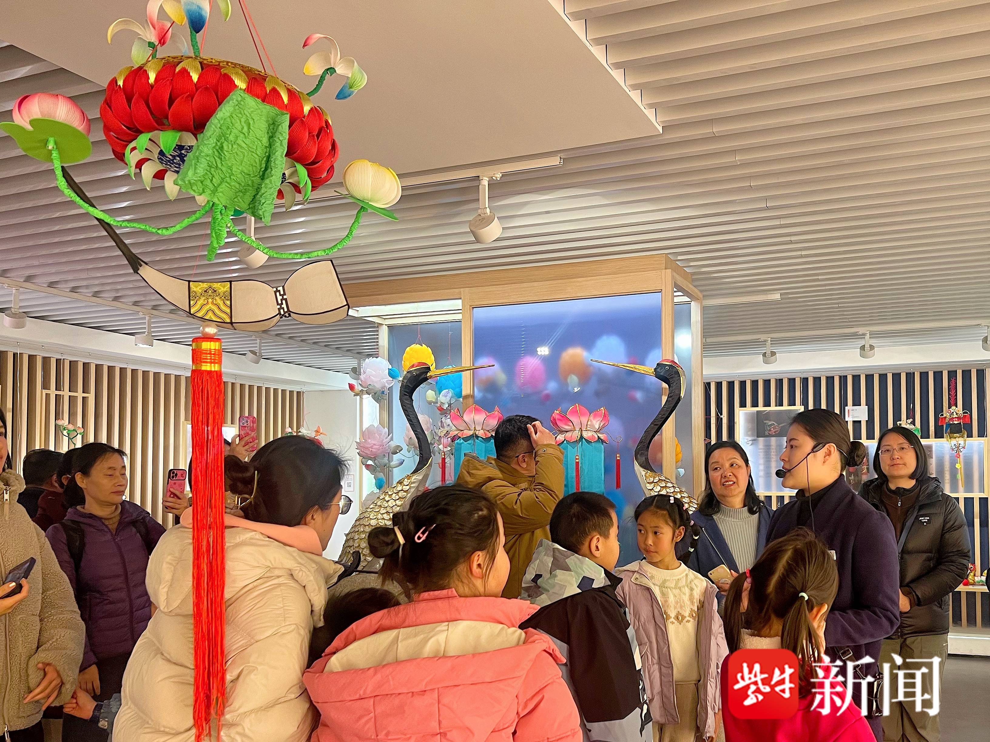 讲座结束后,读者们来到夫子庙秦淮·非遗馆,开启“跟着大师走读非遗学做秦淮灯彩”的读城之旅。展厅内陈列着荷花灯、马灯、兔子灯等各式各样的秦淮灯彩作品,造型灵动、色彩鲜艳,不少游客驻足欣赏。
